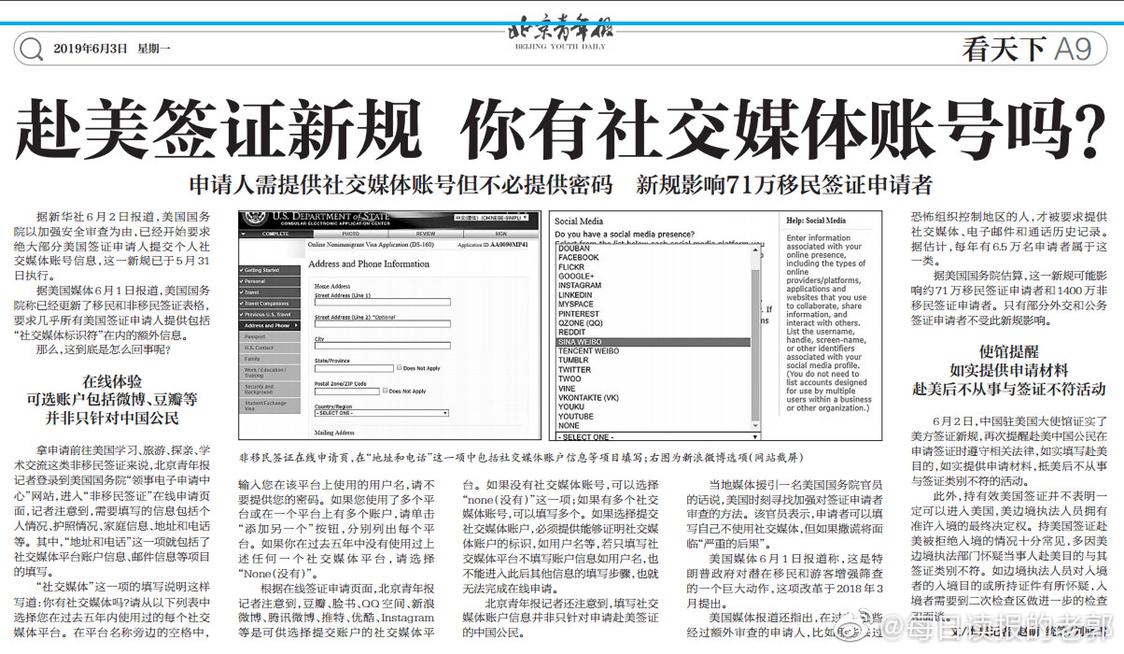 看你是去旅游还是探亲咯!美签请真实填写 这个国家很注重真实性 如果由于这个被拒签 可是得不偿失【赴美签证新规你有社交媒体账号吗?】据新华社报道,美国国务院以加强安全审查为由,已经开始要求绝大部分美国签证申请人提交个人社交媒体账号信息,这一新规已于5月31日执行。“社交媒体”这一项的填写说明这样...显示全部