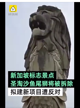 报道称,之所以要拆除这座标志性的鱼尾狮雕像,是要为连接圣淘沙岛南北的新走廊让路,而且,这可能也有助于提升圣淘沙岛的吸引力不过,这一计划令一些新加坡人感到不安,他们对这座高耸的雕像有着怀旧的记忆。
