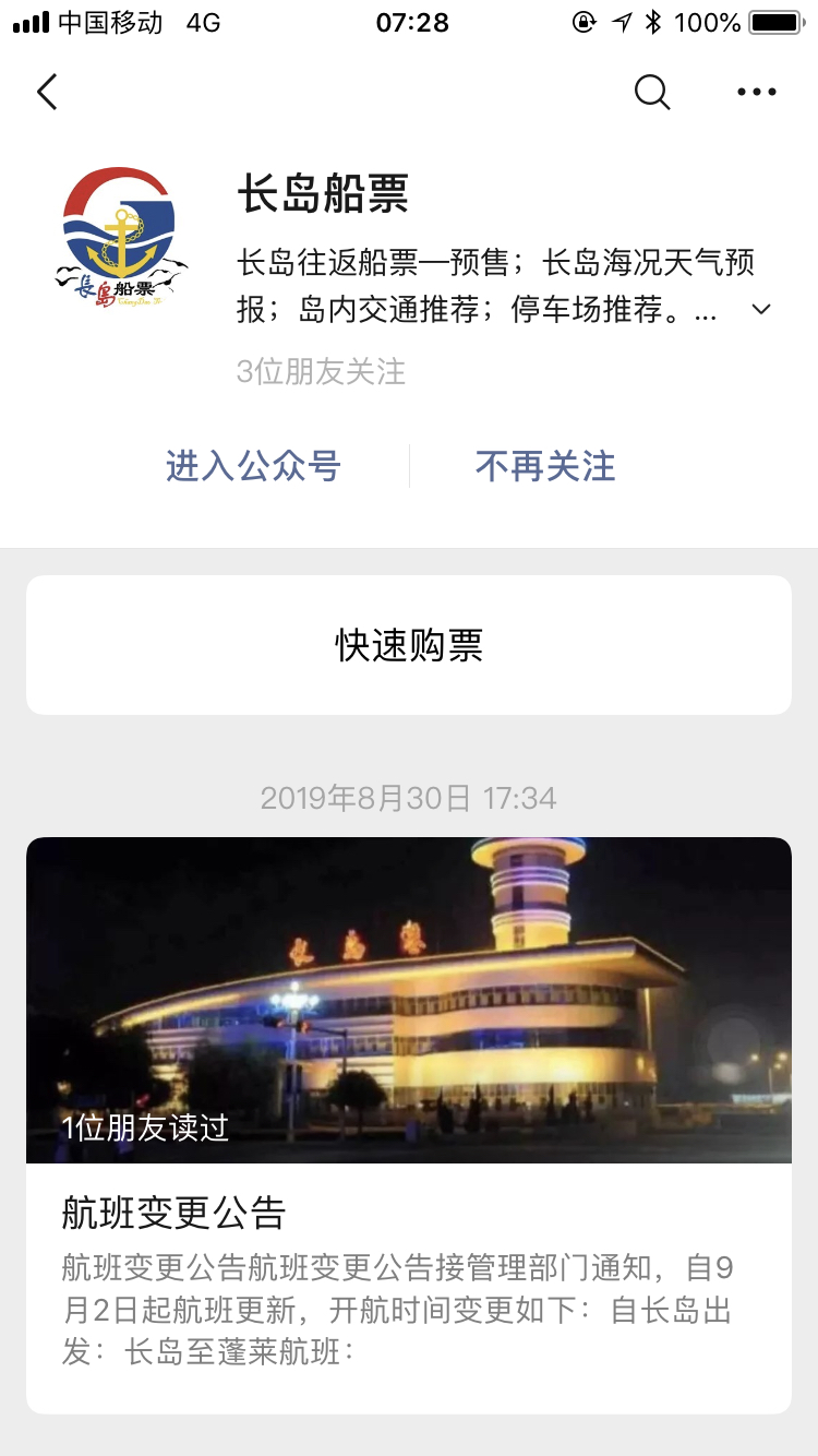 可以网上购买,关注微信公众号“长岛船票”,上边有船期的发布,也可以买票========== 如果你觉得TA的回答不错,快来给TA点个赞吧! 你的支持是对作者莫大的鼓励~显示全部
