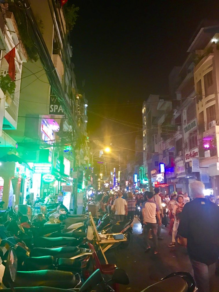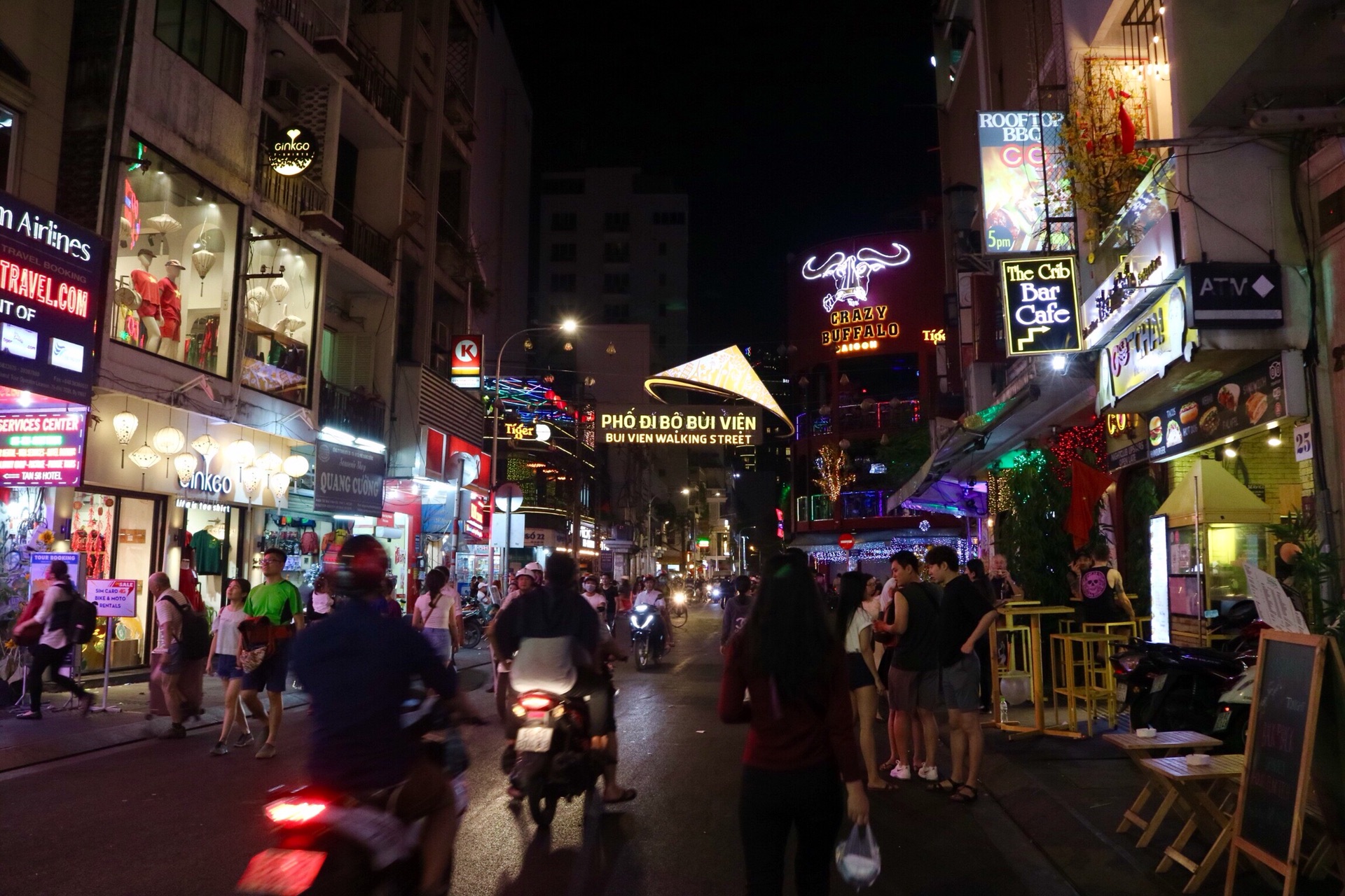白天的西贡洁净明亮,夜晚却似群魔出动。 源源不断的摩托车大军,疯狂的酒吧,拥挤的大排档,甚至还有提供特殊服务的暗巷。