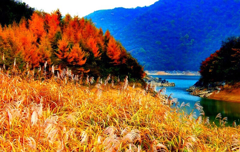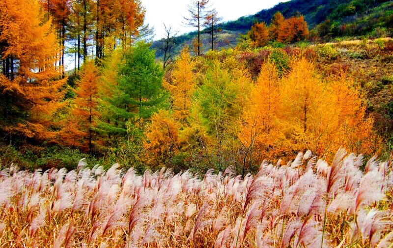 高山湖泊、蓝天白云、红叶鎏金,原始森林遮天蔽日。漫山遍野,浑然天成,绿意换新颜。那绚丽多彩的松树叶,在秋风中摇曳着生命的张力。各种红叶黄草浓妆淡抹,相映成趣,风姿各异,争奇斗艳,步行其中,宛如进入绮丽的梦幻世界。