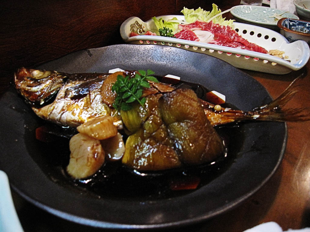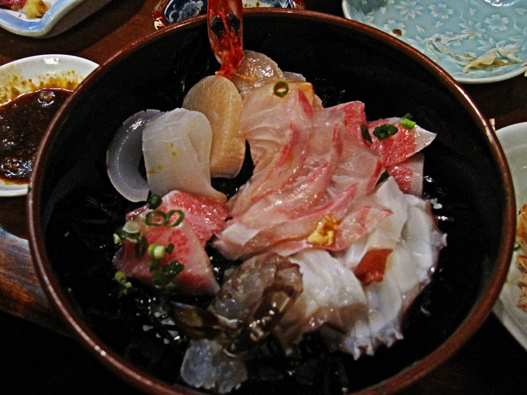 海鲜饭广岛黑猪肉火锅广岛黑猪肉竹筴鱼煮茄子马刺一、熊本的马刺熊本县销售马肉的居酒屋,一盘鲜马刺大约100克,2700日元,马肉在這里也被称为樱肉,是節日宴席上不可缺少的菜肴。一匹馬身上能做刺身的部位很少,所以价格昂贵。一碗海鲜饭2500日元,里面有扇贝柱,鱿鱼,章鱼爪,甜虾,新鲜弹牙的鲷鱼,还...显示全部