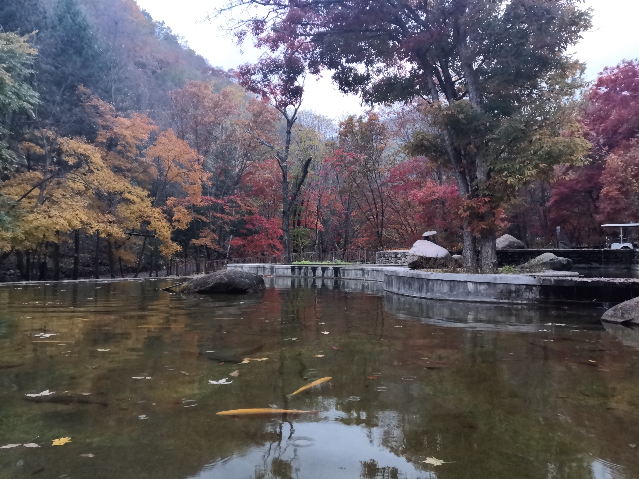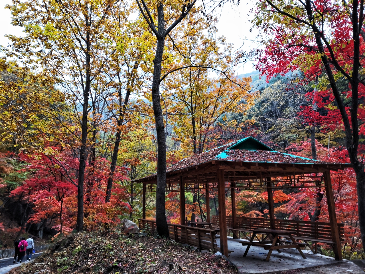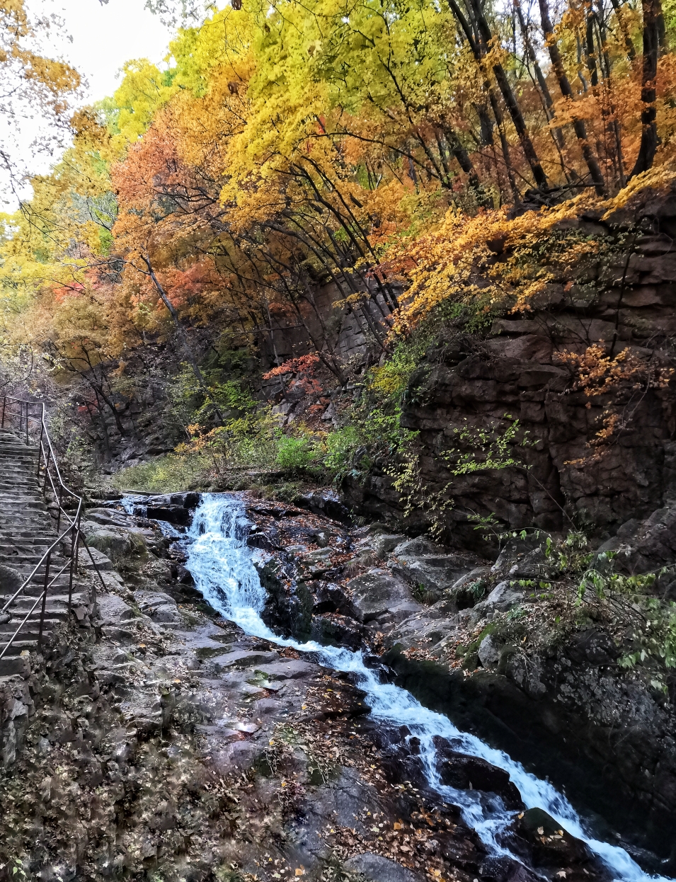 本溪一线此类景色很多,漫山风景,但时间很短,下霜后基本就没有了,要看要抓紧!