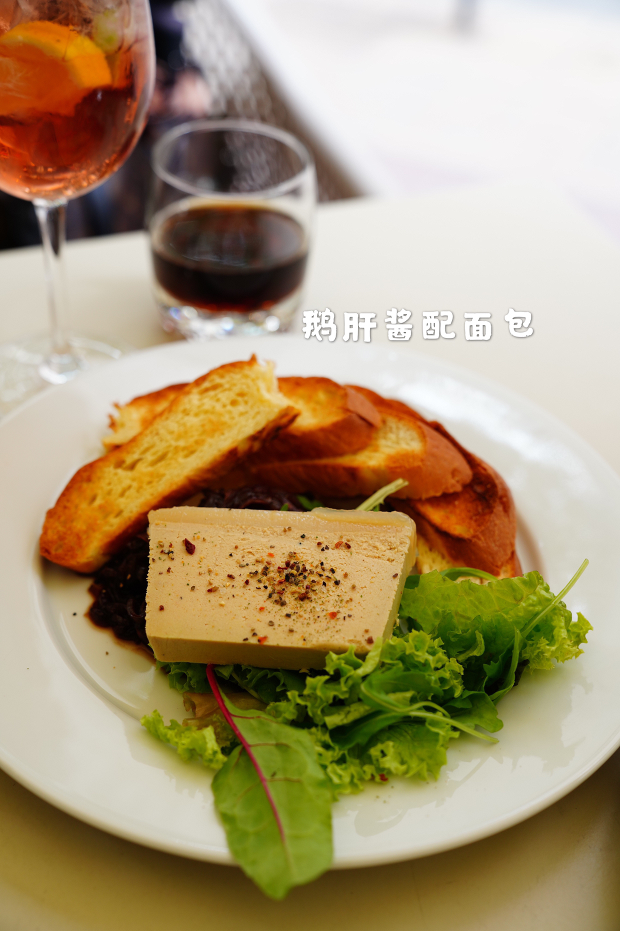 鹅肝酱配面包也是必点。鹅肝酱配合着酱洋葱涂在面包上,非常醇香。