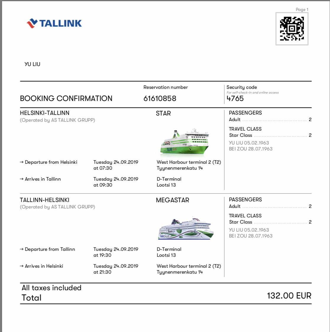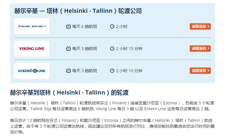 从赫尔辛基到塔林的标准一日游行程通常是从位于市中心的码头乘渡船⛴️到塔林,单程二小时,网上或现场很容易买票。建议买早出晚归的航班,从而保证在塔林老城️五、六小时的旅游和午餐。