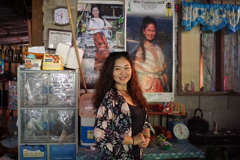 一大早起来,他带着我和他的家人一起去Lio beach拜访妈妈,表弟,大姑……终于来到大姨家,带着一堆亲戚一起,指着他妹妹的照片跟我说,“你看是不是很像!我妹妹还是Miss Cuyonon呢,在这里很有名的!”