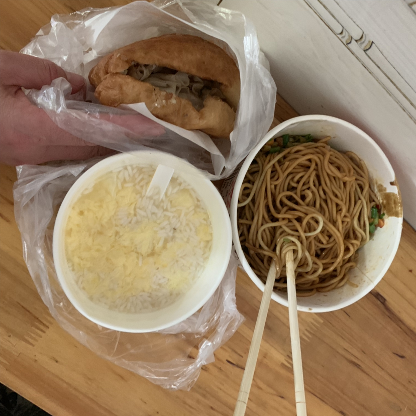 但很多人反映其实并没有那么好吃,而他们家普遍反应最好吃的是油饼包烧麦,所以,想吃油饼包烧麦可以顺便来一碗热干面尝尝鲜。