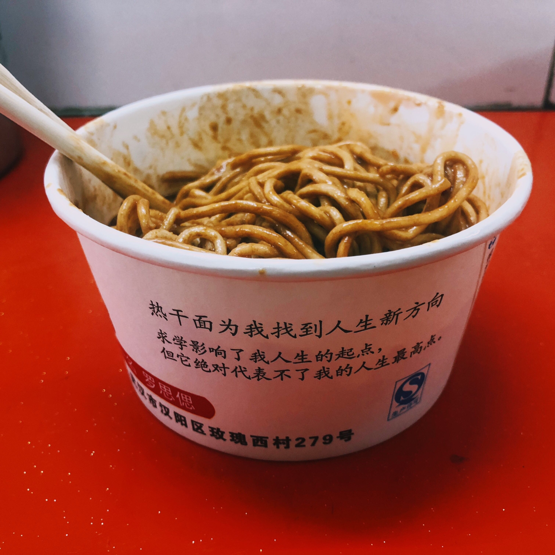 24小时营业的清真热干面馆,有人从武昌专门开车过来带一整箱回去。口味是碱味偏重的传统型,想吃到以前的老味道可以试试。