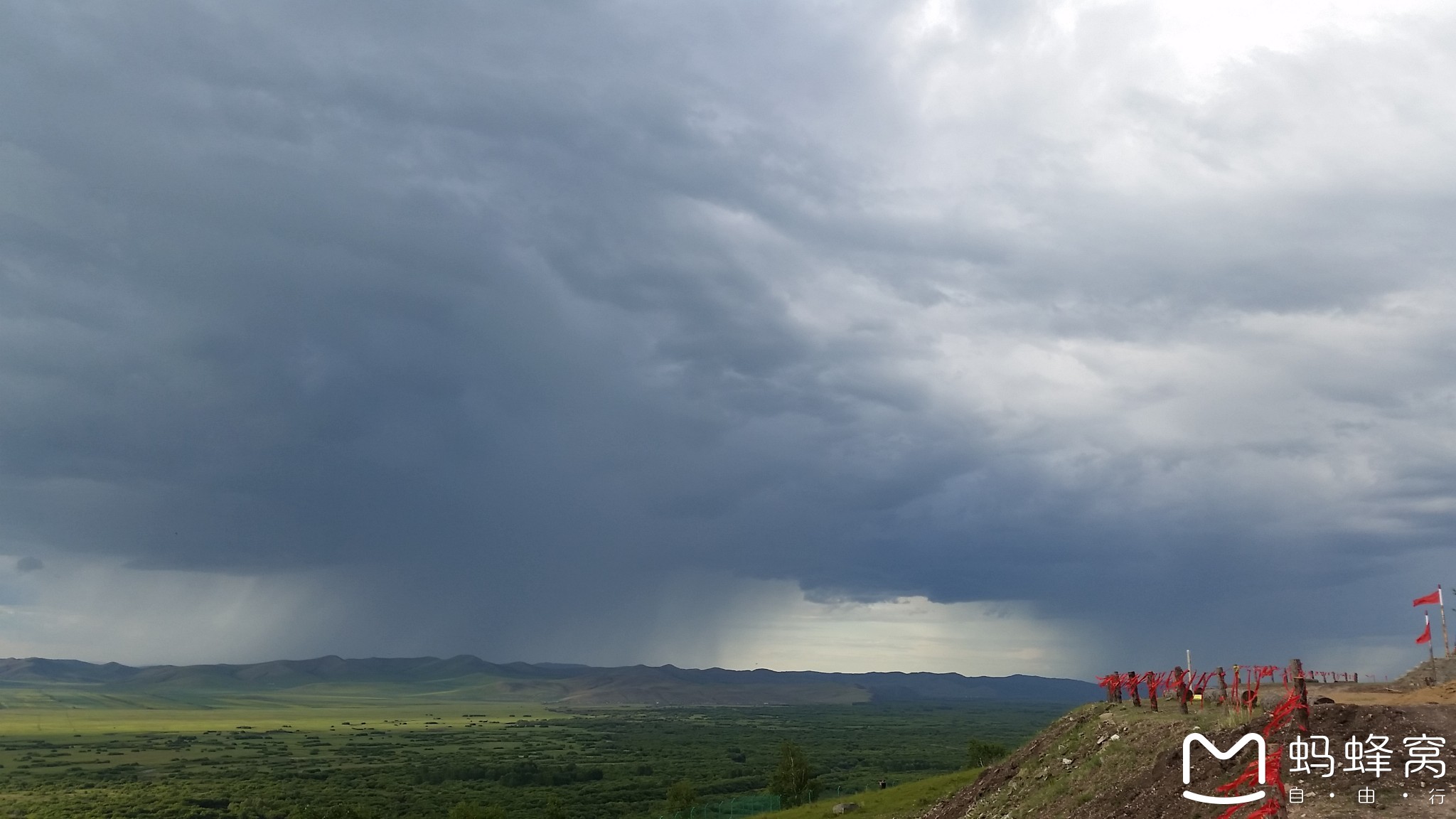 湿地在湿地的制高点上观看远 方正 在下雨的景象,这是在内地无法看到的。