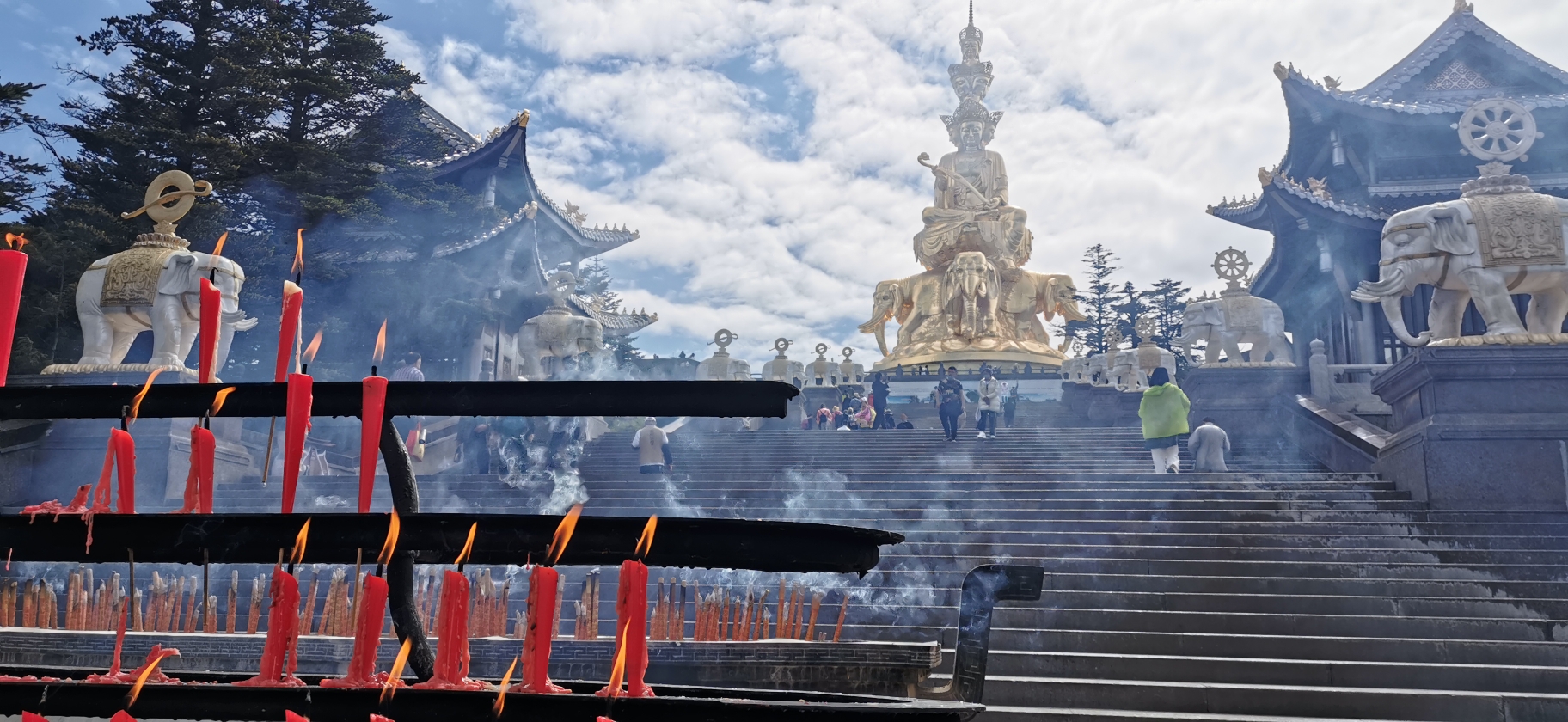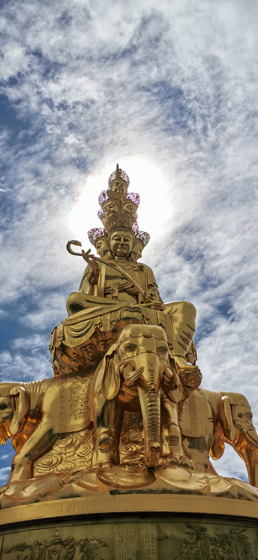 到达金顶一定要抱着虔诚的心,当太阳照射在十方普贤菩萨像上,整个佛像通体发光,你会被眼前的景象震撼,感受到十方普贤菩萨普度众生的慈悲,如果不是特殊事情或者佛教徒,可以不买香,只要心诚拜一拜也是对菩萨的敬仰!