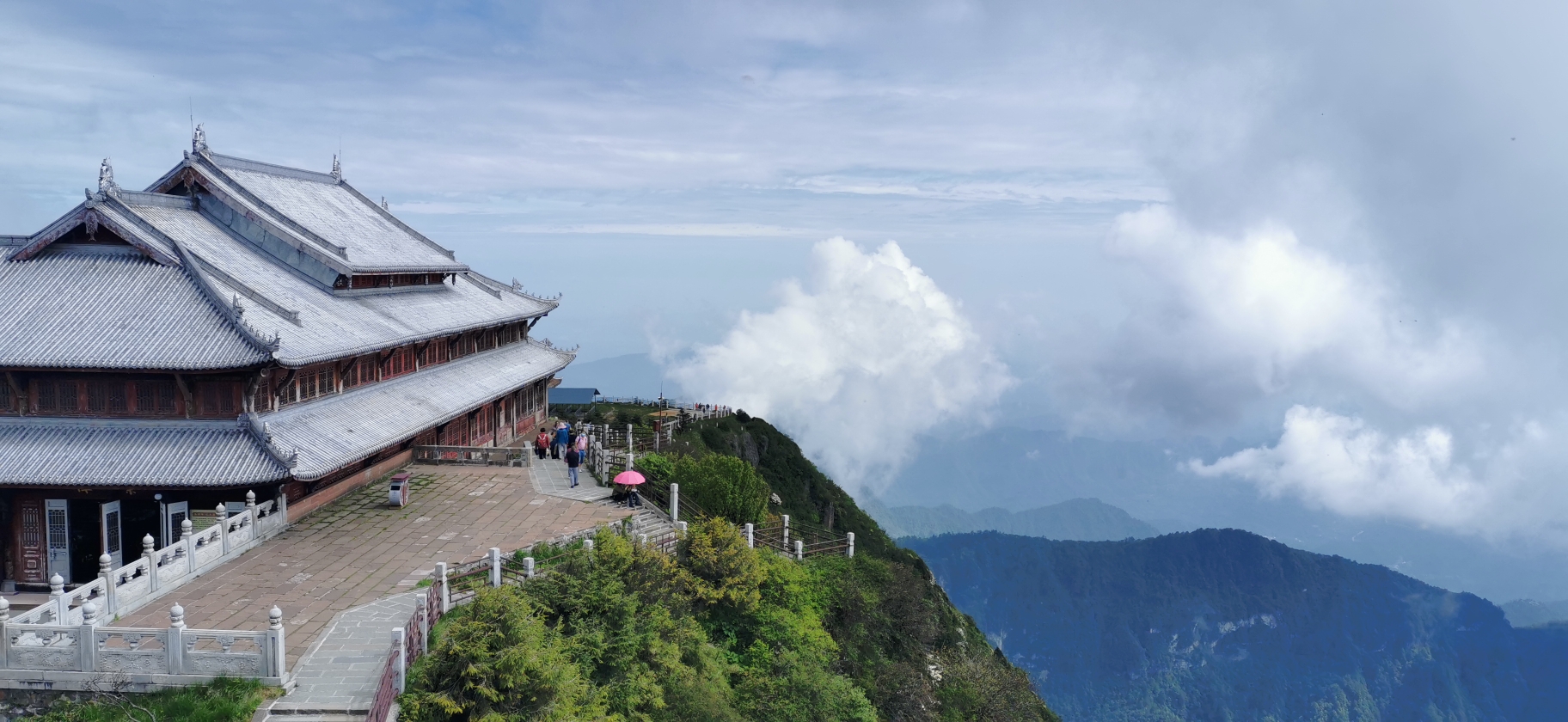 在金顶看云海是再好不过了,只要天气晴朗,或者是冬天都特别容易见到,云海在你身边飘过,伸手可以触碰到,而你也被云海包裹,如果有幸的话你还可以看到佛光的奇特自然景观,在这里一定要注意安全,不要为了拍照作死,因为下面就是万丈悬崖!