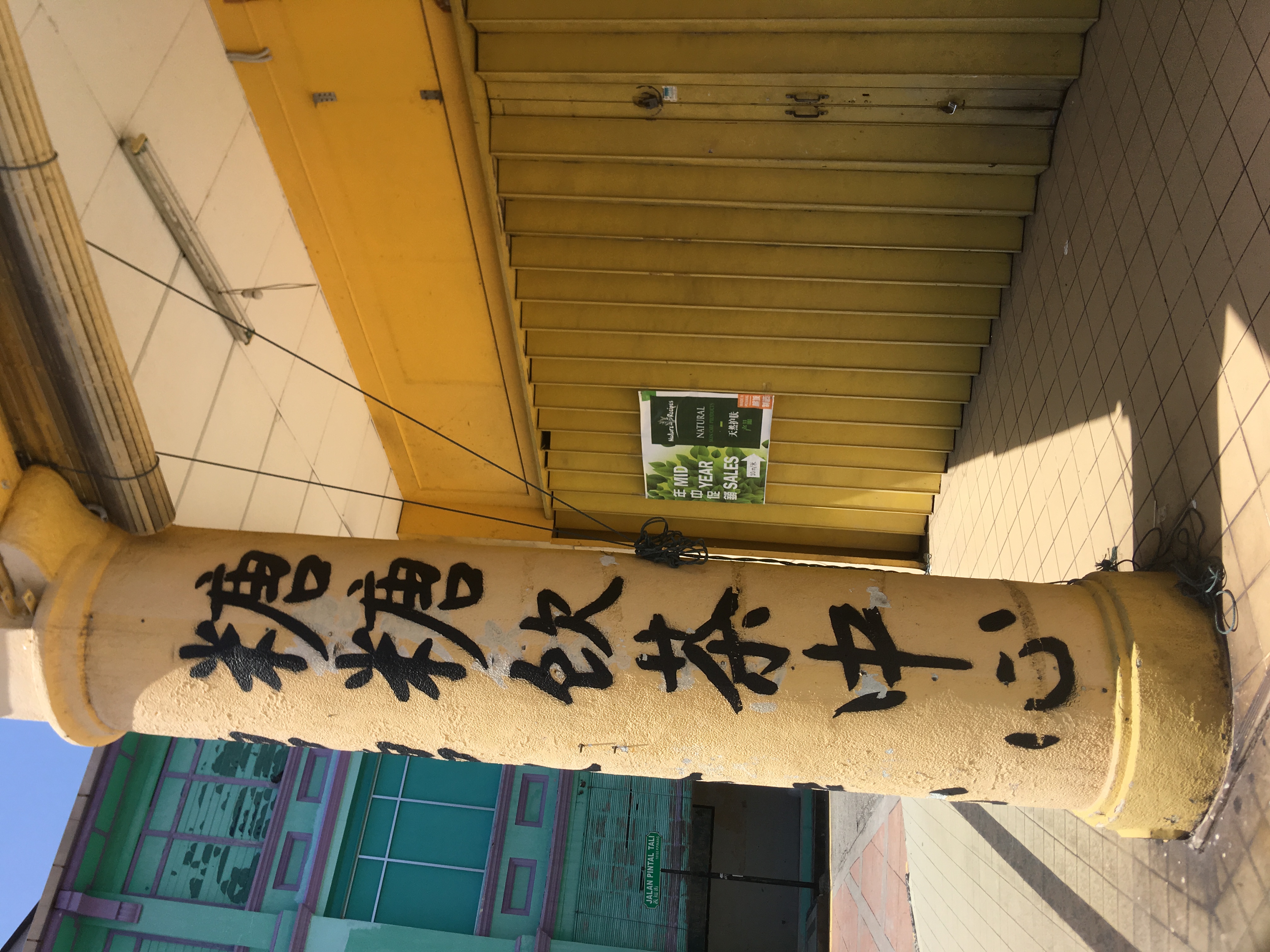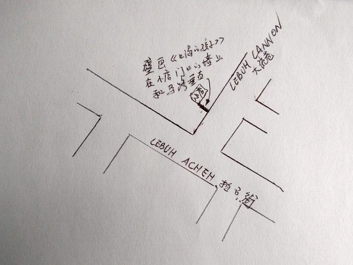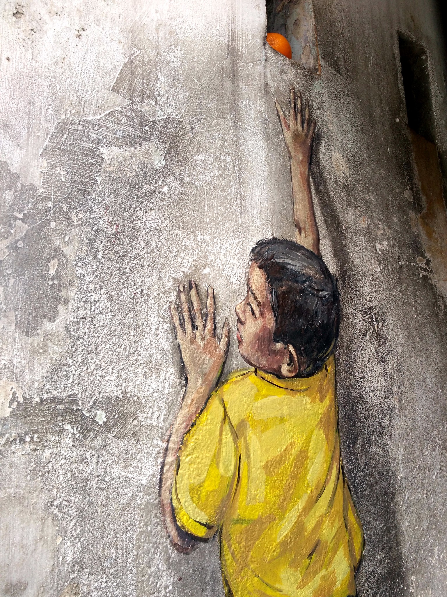 《爬墙的小孩》在一个小店门口,和LEBUH CANNON(大统巷)垂直的墙上,不留神就会错过。