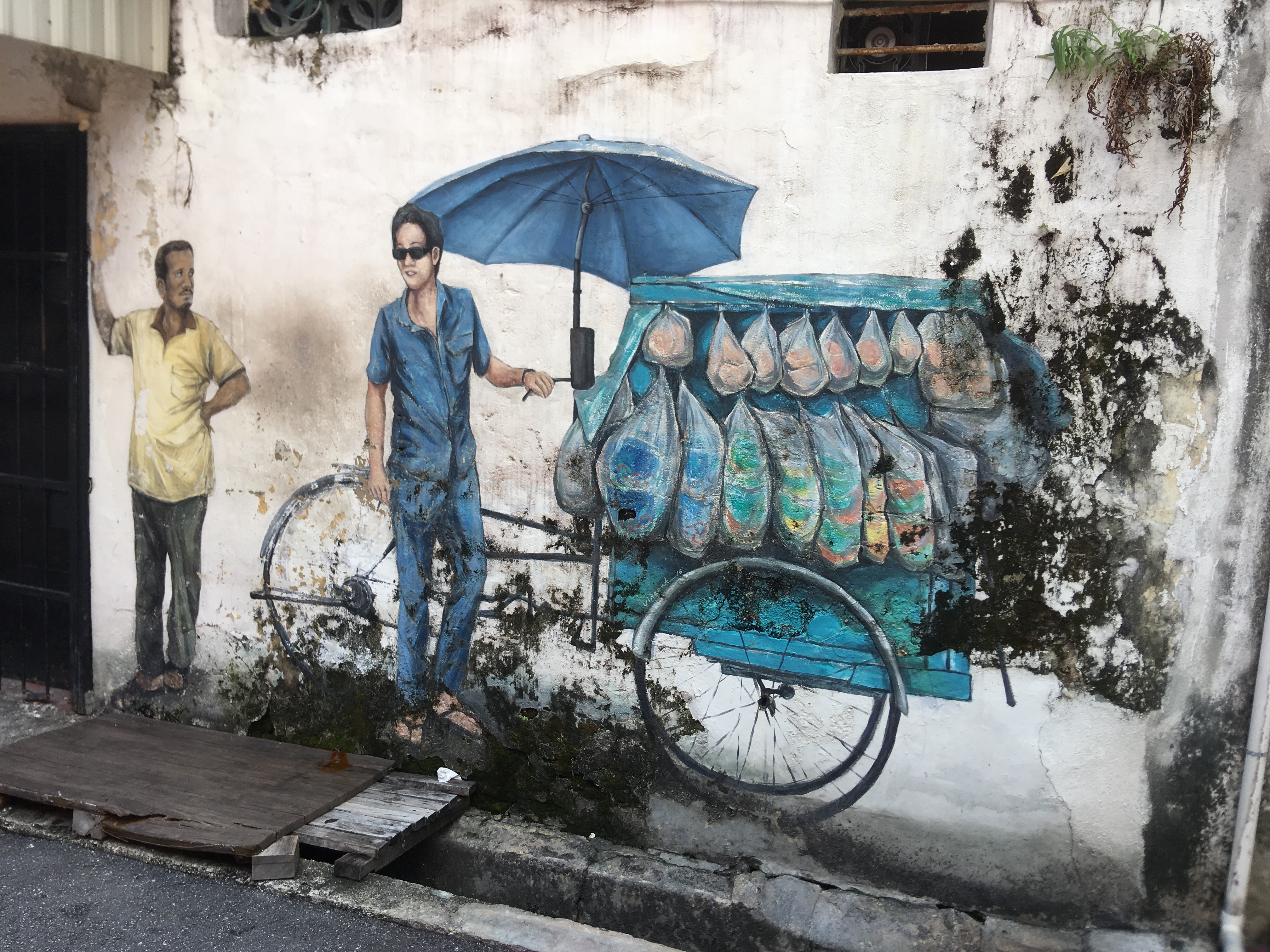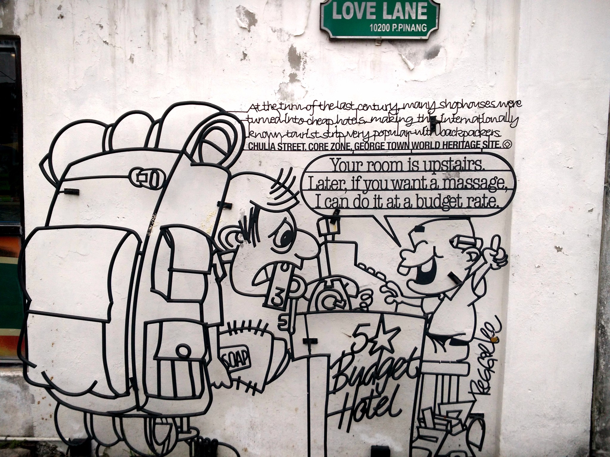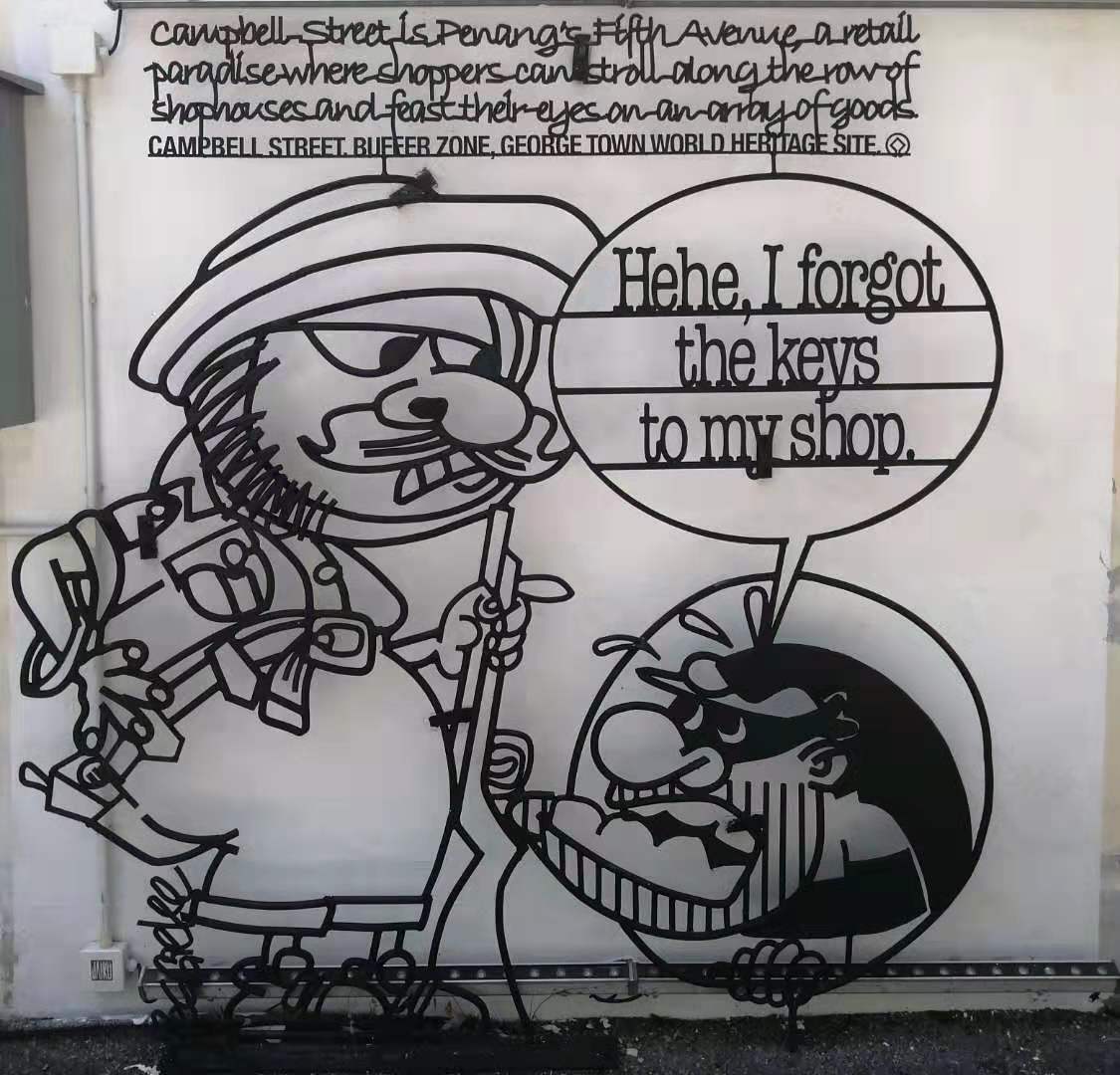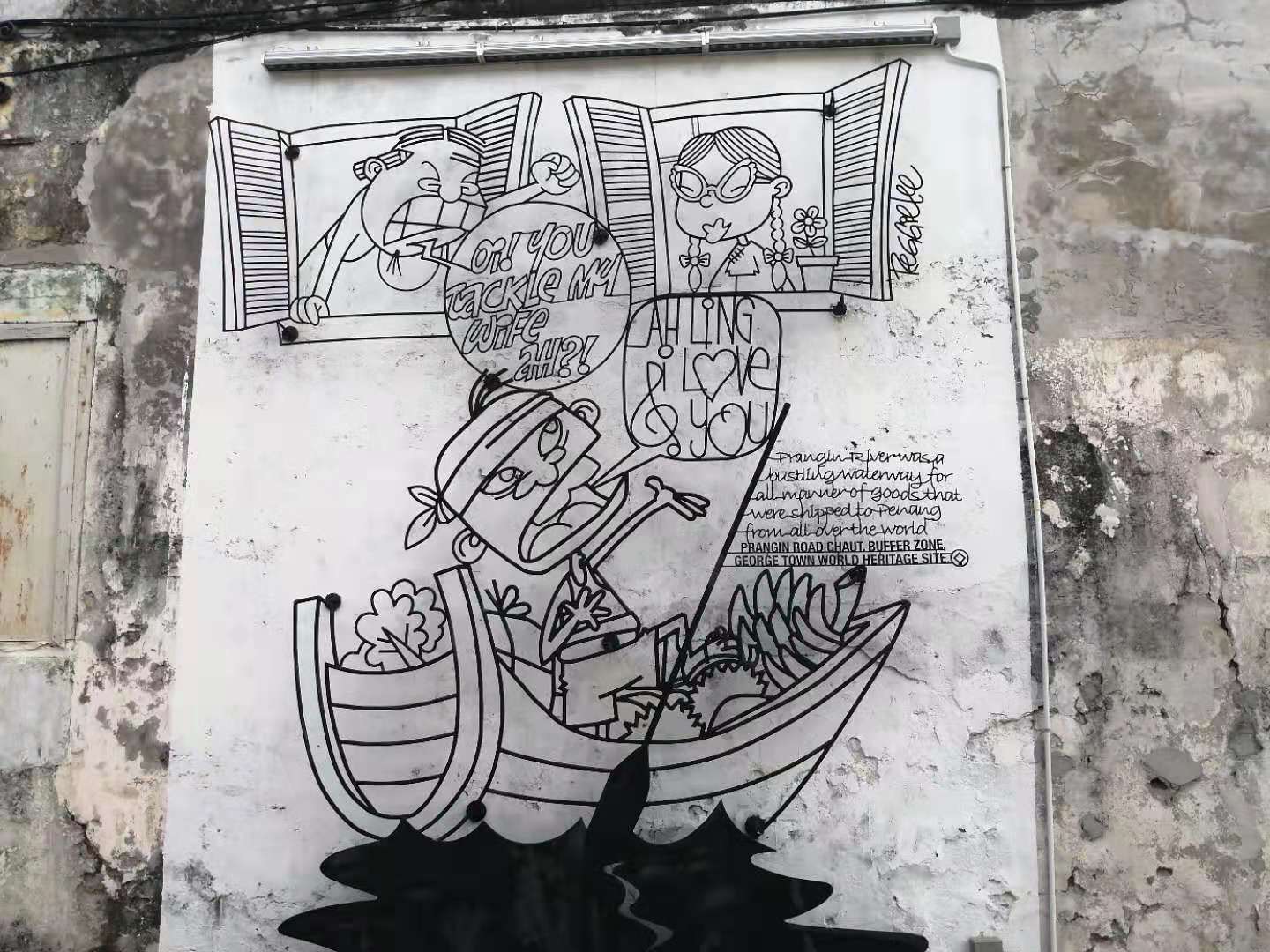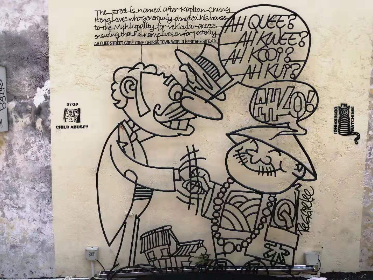 还有在乔治市街头艺术,开启20多幅壁画和52幅铁艺画的爱好收集。在