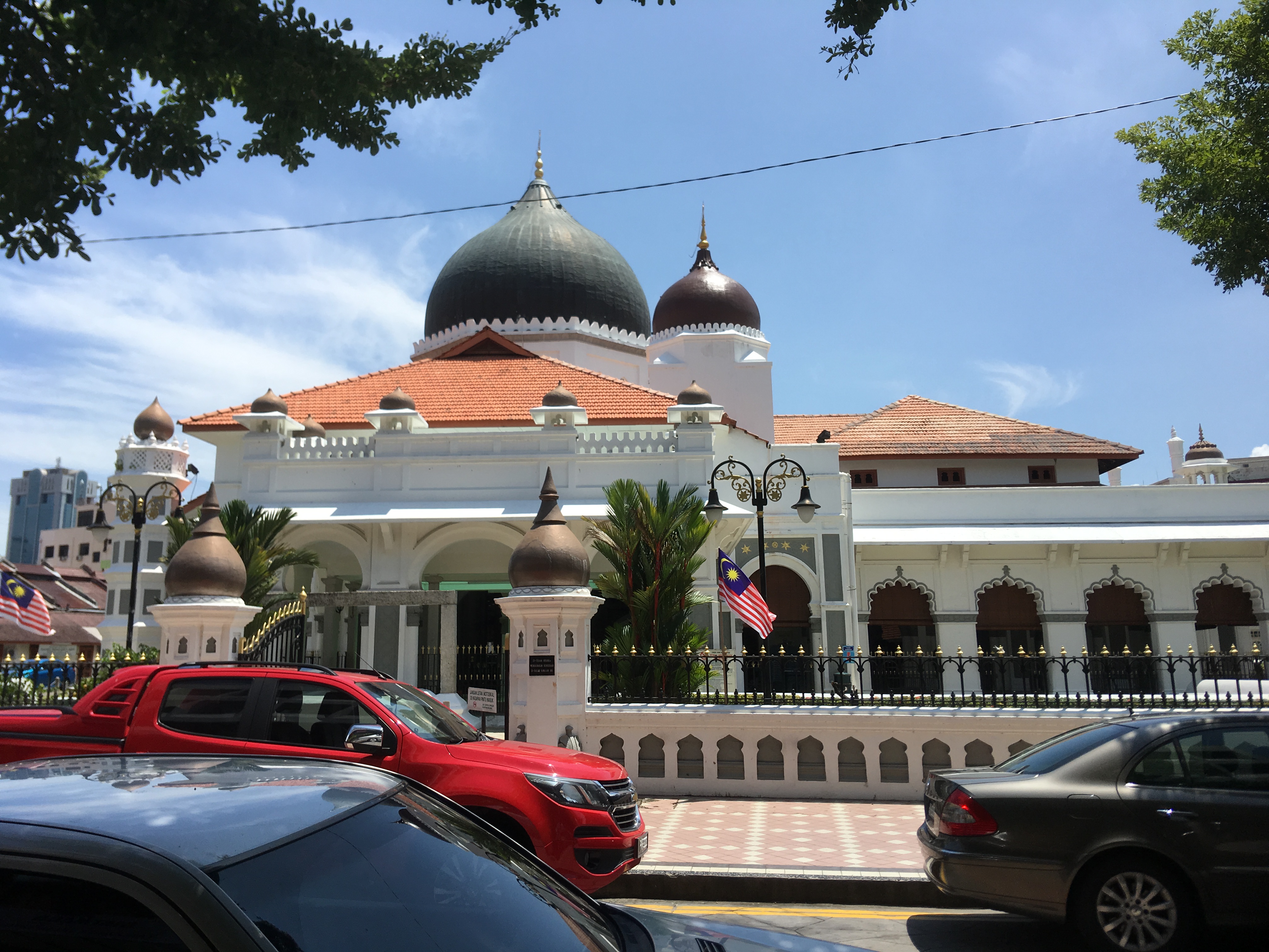 马六甲海峡清真寺是马六甲看日落最美的地方,位于人工修筑的马六甲岛上。每当海水涨潮淹没了支撑着清真寺的 石柱 后,整座建筑仿若一座移动之城,飘浮在海面上……