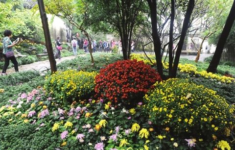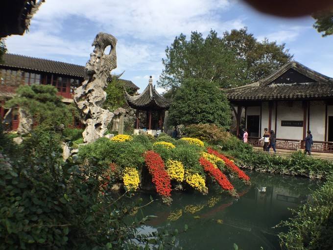 4。留园的菊花展,留园里的花圃、树木周边都已经摆上各种品种的菊花,颜色缤纷绚丽,造型千姿百态,看着就很养眼。(没有拍成,借用网络一张图)