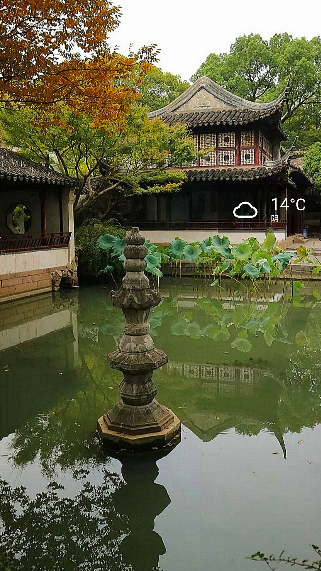 初秋的凉意并不明显,直到霜降过后,树叶才开始微黄,此时留园中间的池中已是残荷点点。如果赶上下雨天,也不要失望,这时候游客还少,静待在窗前像古人一样听雨打残荷和芭蕉的声音。