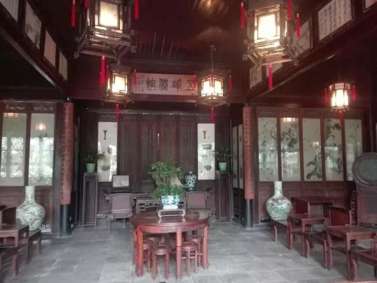 【涵碧山房】宋朱熹的诗“一水方涵碧,千林已变红”。建筑面池,水清如碧,涵碧二字不仅指池水,同时也指周围山峦林木在池中的倒影,故借以为名。建筑三间,卷棚硬山造,东面紧靠明瑟楼,刘氏时称“卷石山房”,盛氏时名“涵碧山房”,因建筑前临荷池,故通常又称荷花厅,俞樾《留园记》中“凉台燠馆”即是指此。