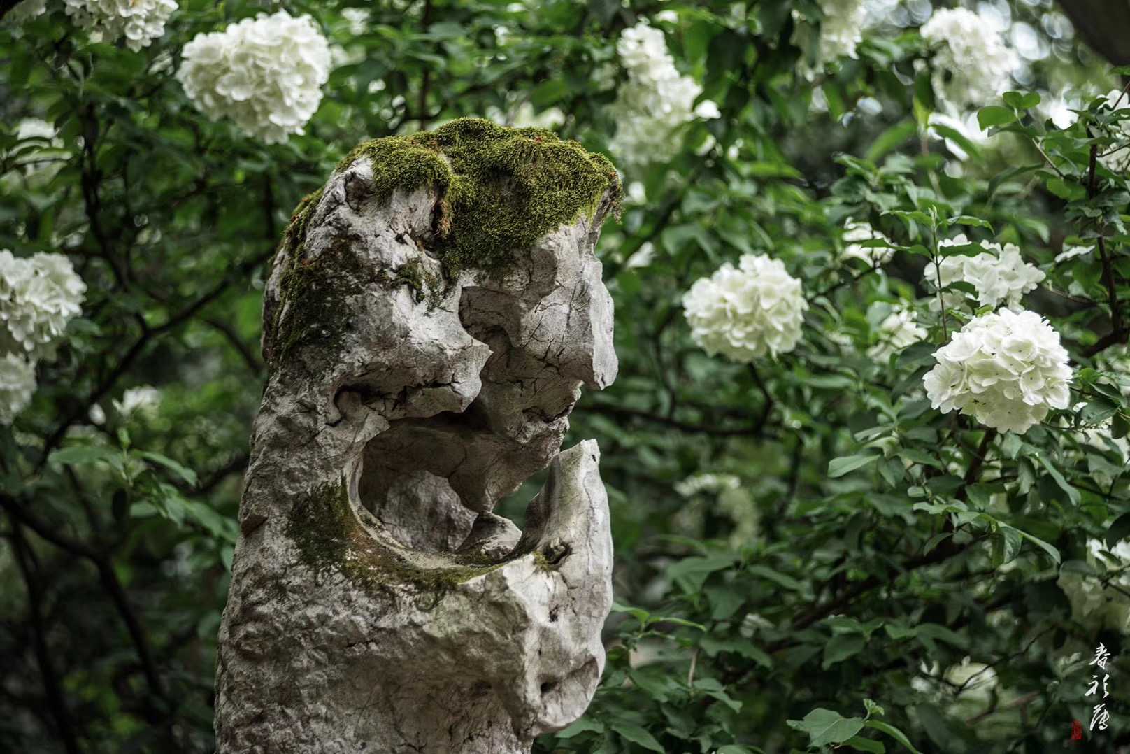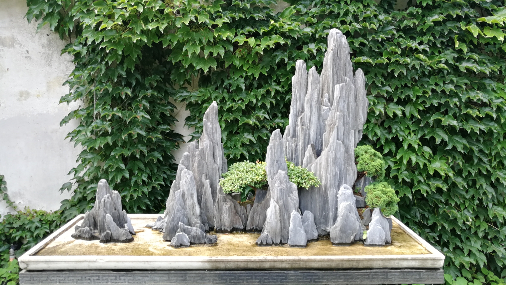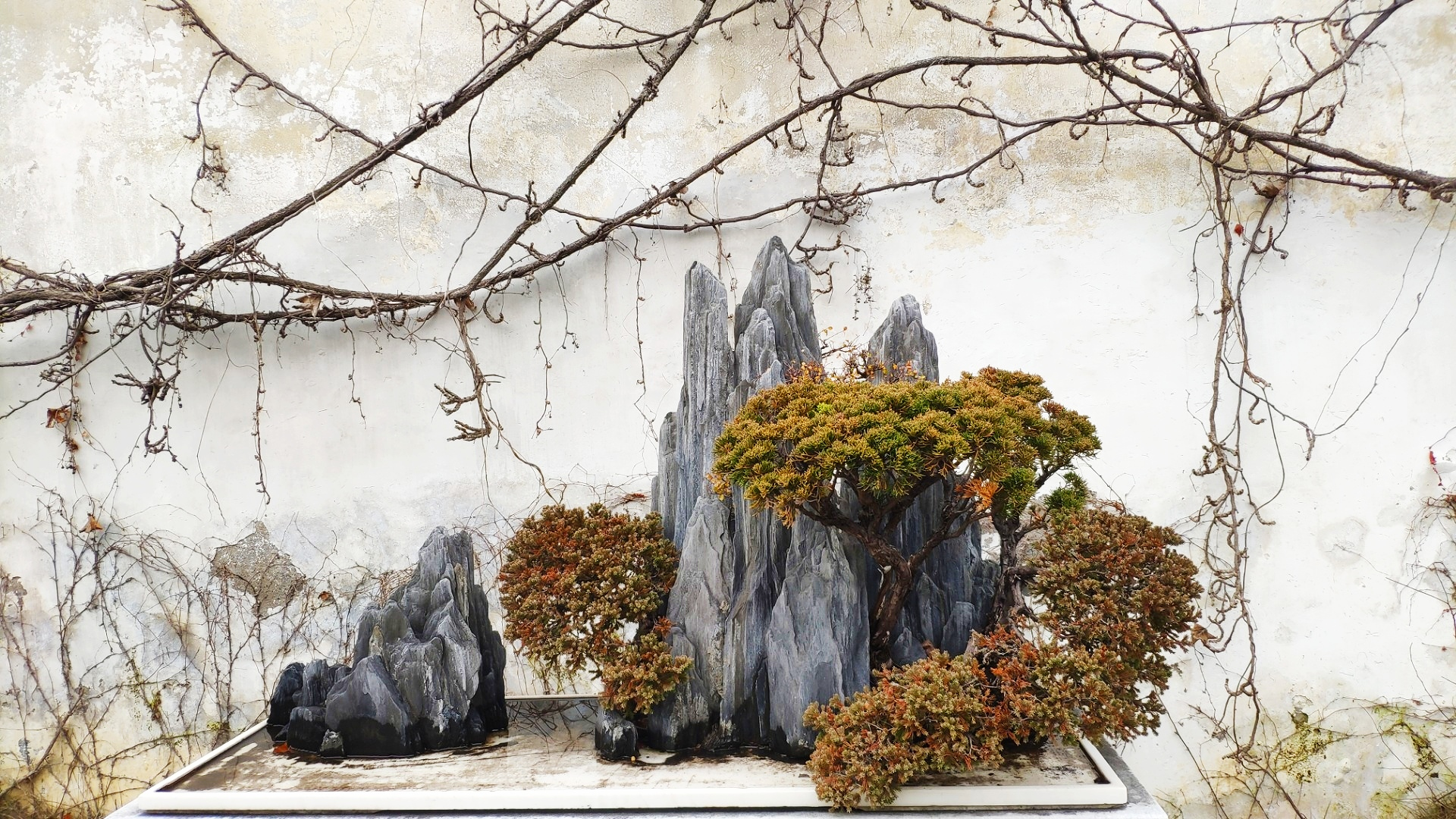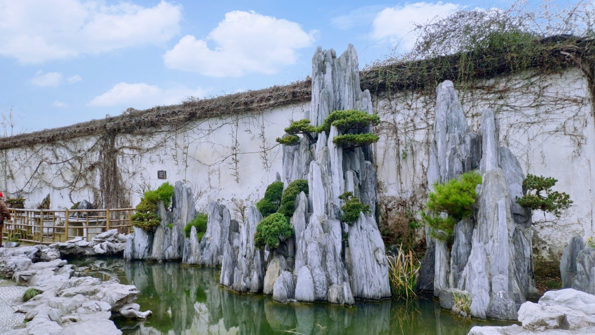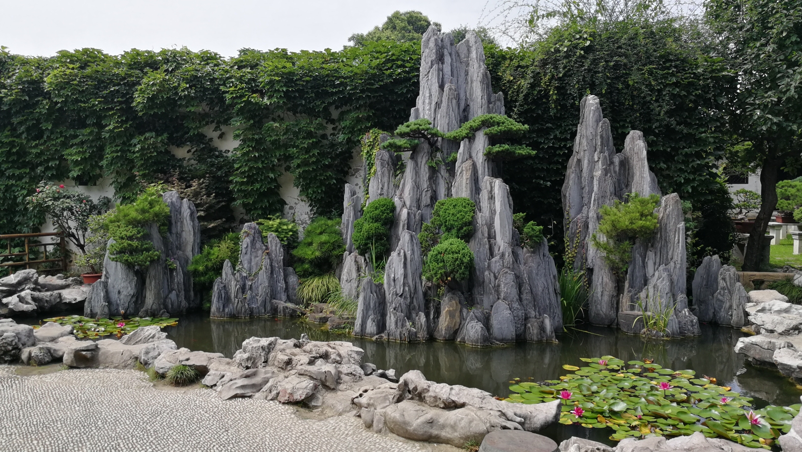 精致的假山和爬满往事的藤蔓