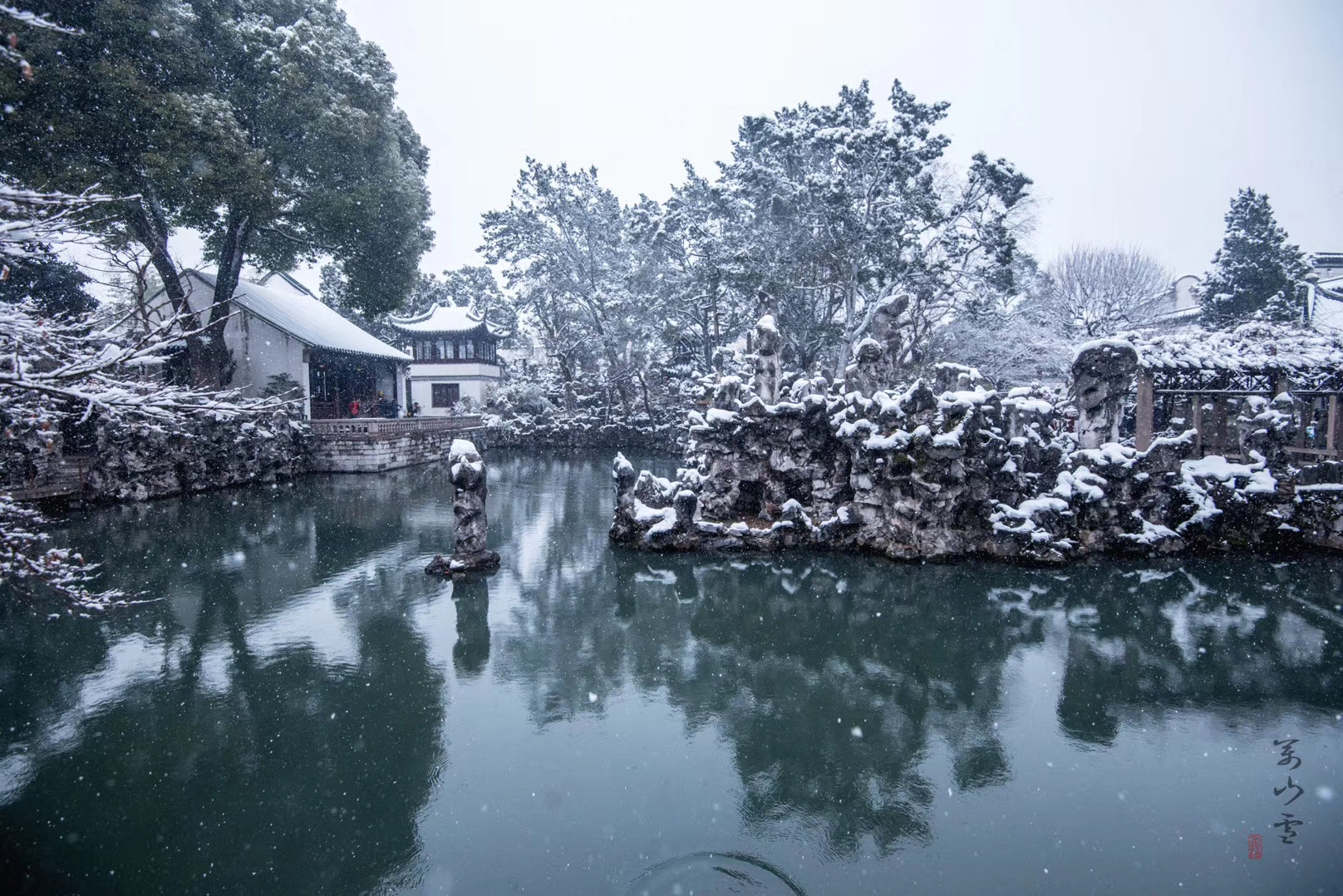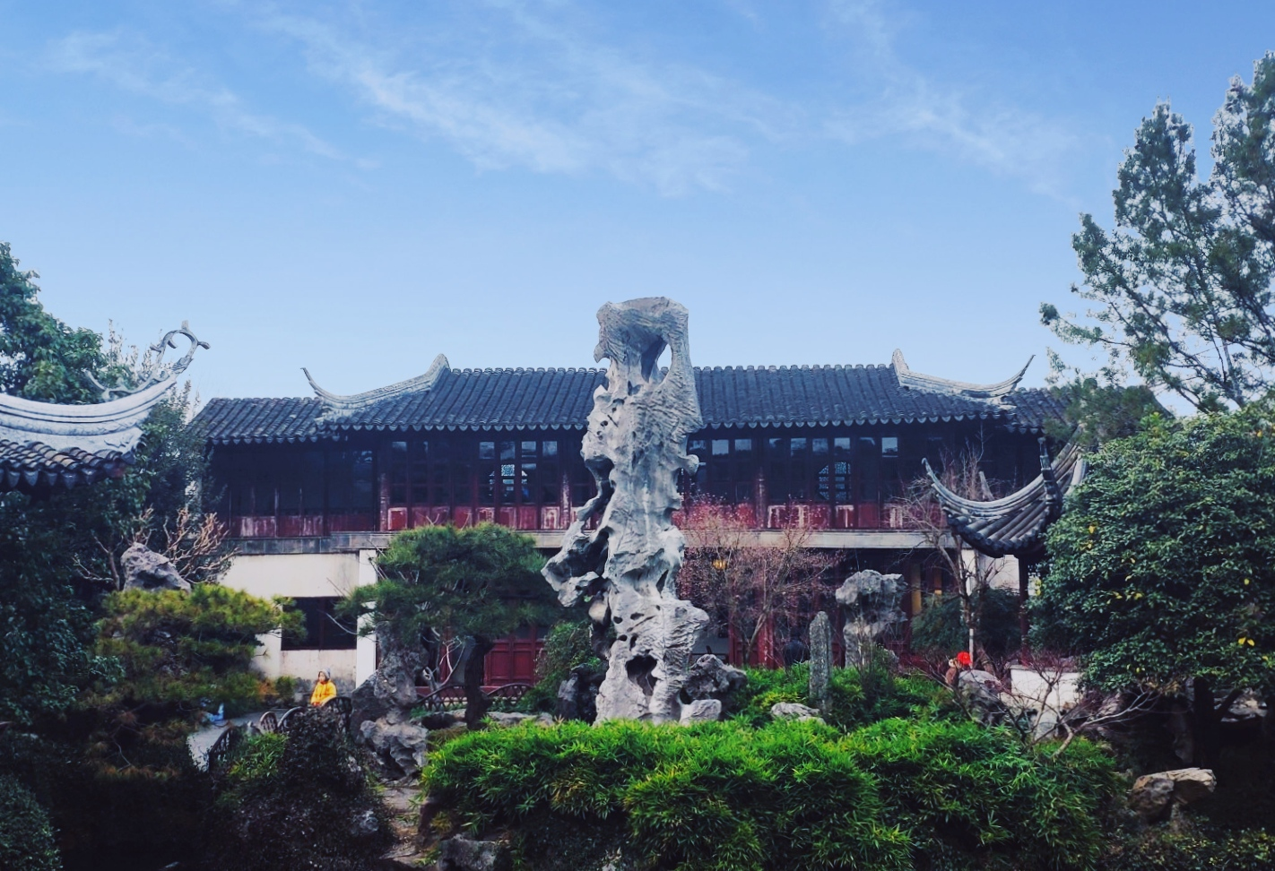 冬天的留园多肃穆,在落叶凋零后,树木只剩下线条未免有点单调,这个季节也是留园最安静的淡季,如果你想享受这份清净,不妨来体验一番。我没拍到过留园的雪景,在某年下雪的时候,我曾到狮子林拍过一场大雪,我想,这里和那边会一样的美吧!