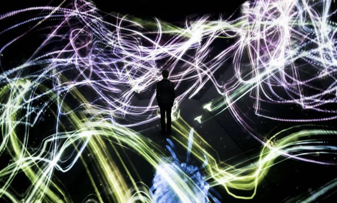 teamLab, 2018, Interactive Digital Installation, 4min 20sec, Sound: Hideaki Takahashi人创造时空,在各种时空交汇之处孕育新的时空