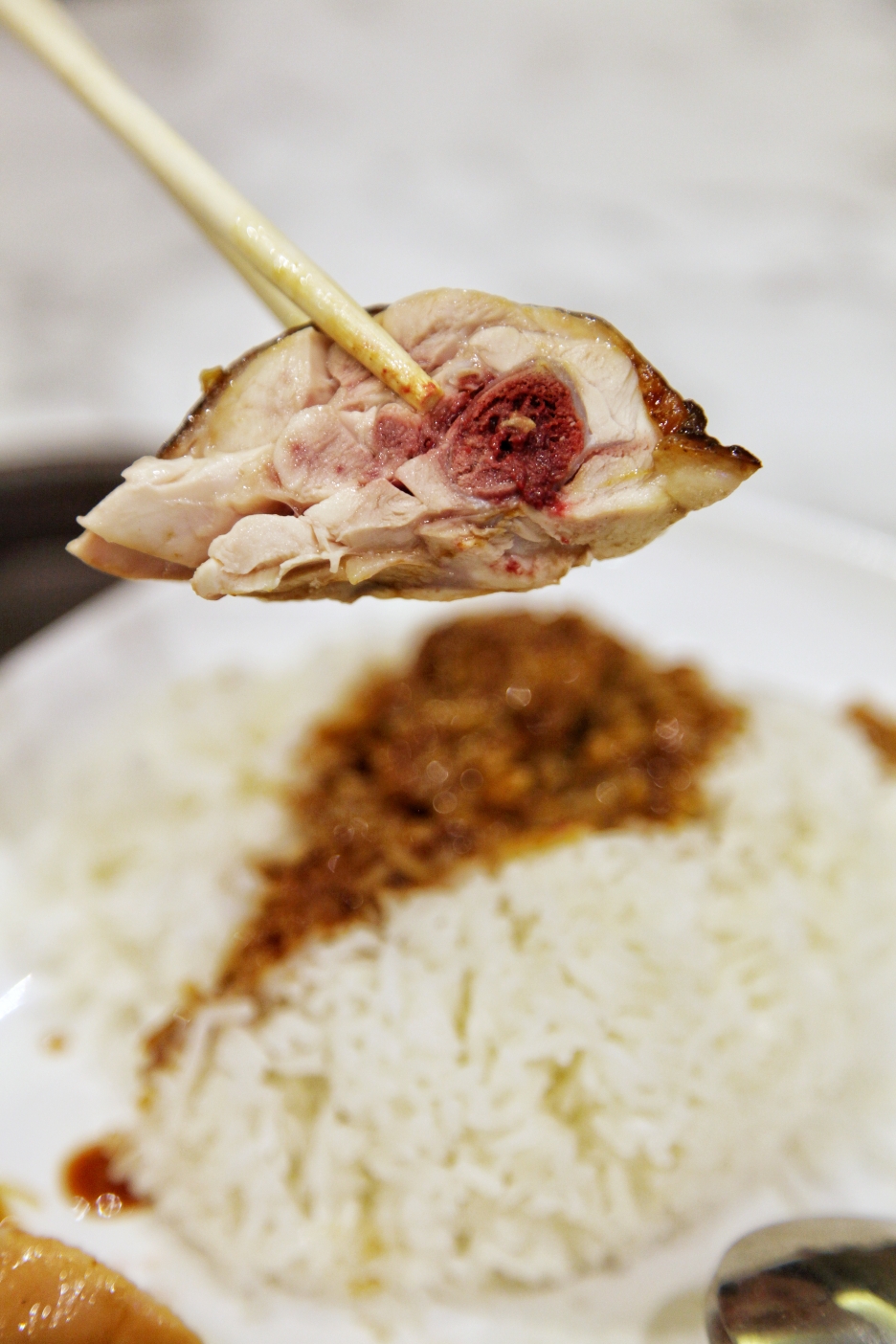 了凡香港油鸡饭面点了个招牌油鸡饭,3.8新币。油鸡肉质水嫩,骨头带些些血,但是肉却熟了,而且时间刚刚好。皮的味道非常好,香甜下饭,鸡很“健美”因为没有什么皮下脂肪,不会油腻,一流的。