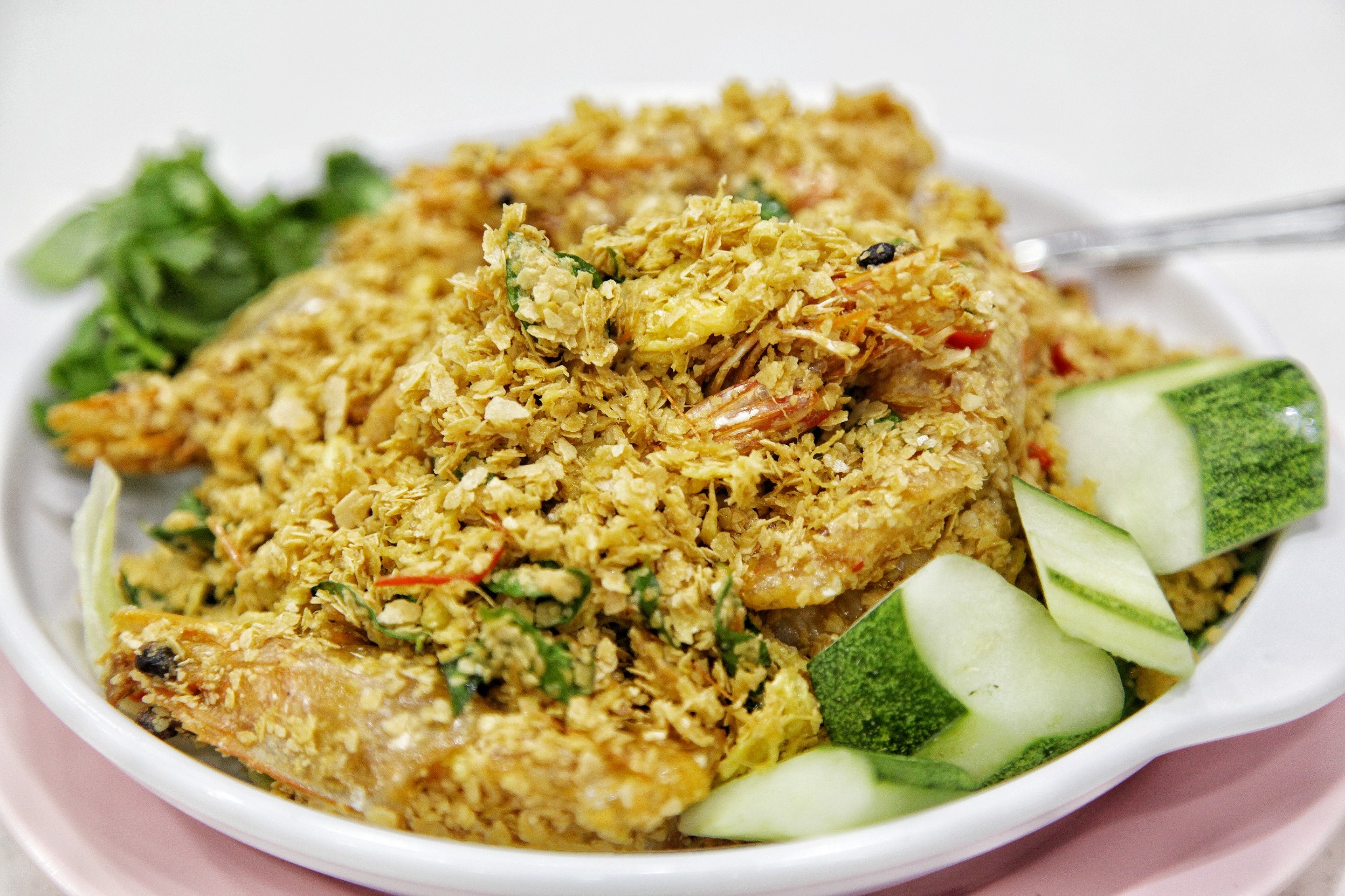 新山亚明小厨极度极度极度!推荐这个麦片虾,做法有点像避风塘,麦片炒得很香,麦香四溢,连虾肉都有麦皮的味道,而且虾皮已经被炸得酥脆可以连皮吞下,虾肉新鲜弹牙一点不油腻,非常好吃。