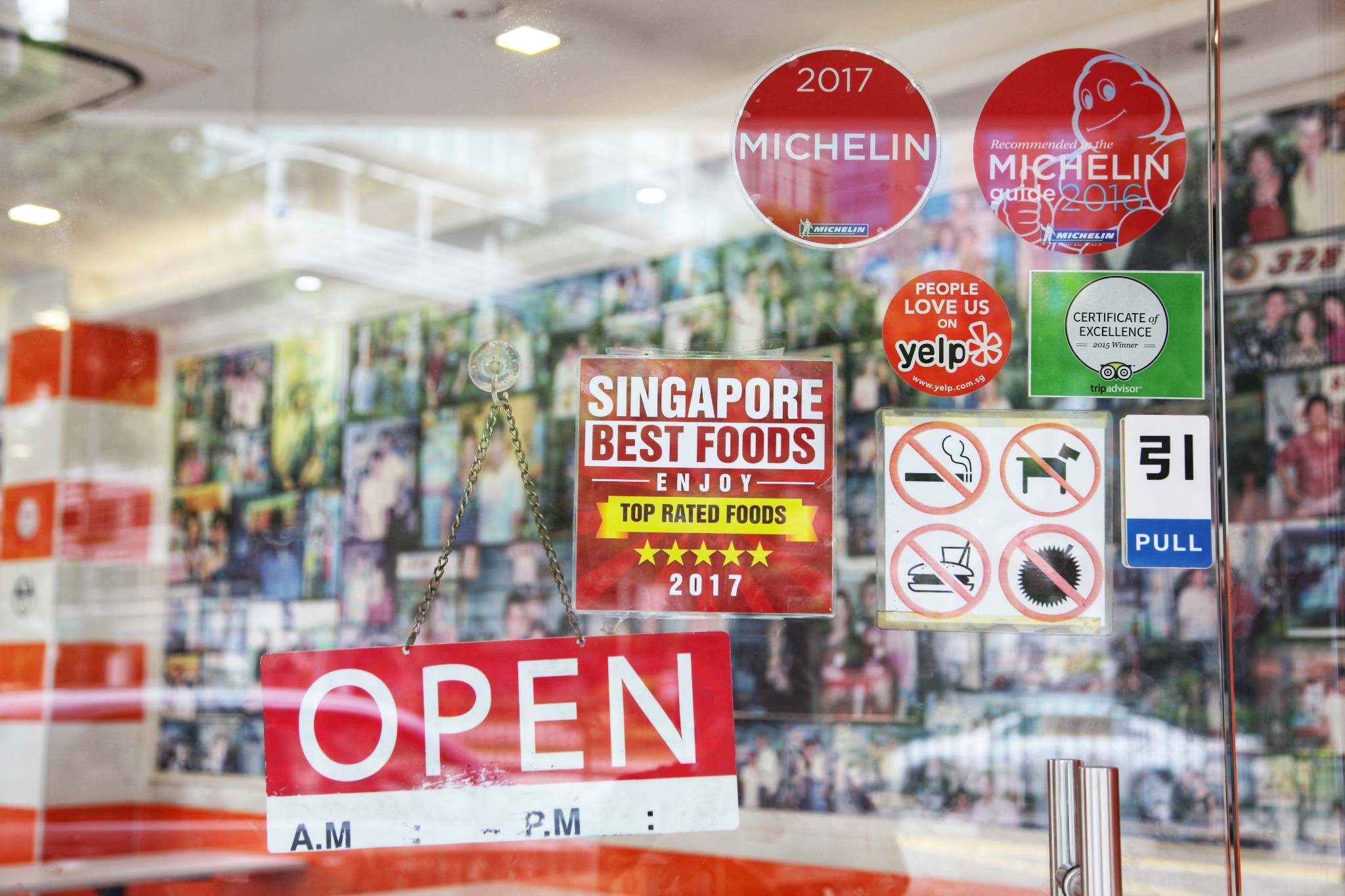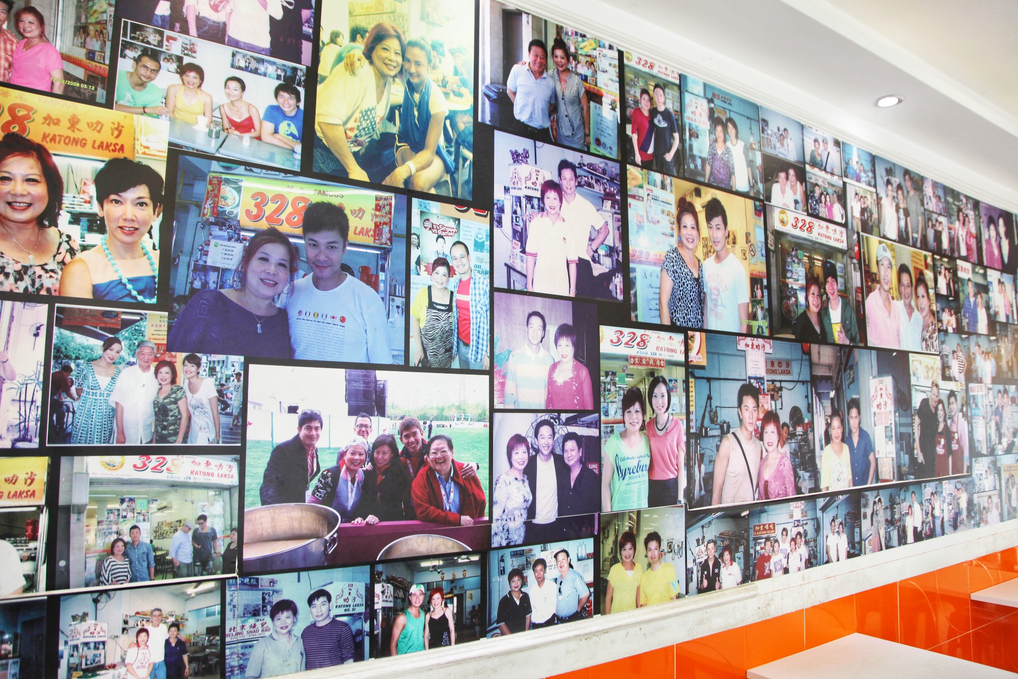 新山亚明小厨老板和明星以及美食家的合影,贴满了整面墙~