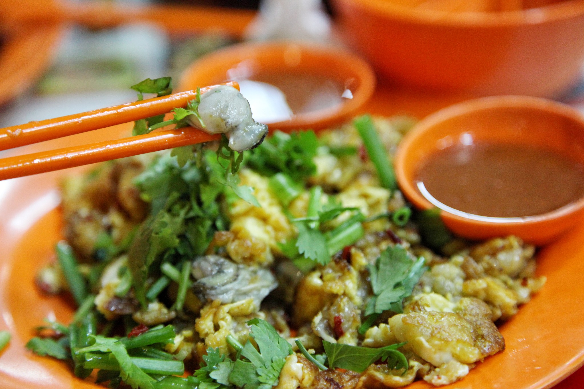 九巷活田鸡蚝煎,大中小分别是五元八元十元新币,点了个小分的,蚝仔好鲜嫩,蛋就比较老,但是整体味道也相当不错了,酱汁酸辣,和蚝仔很衬。