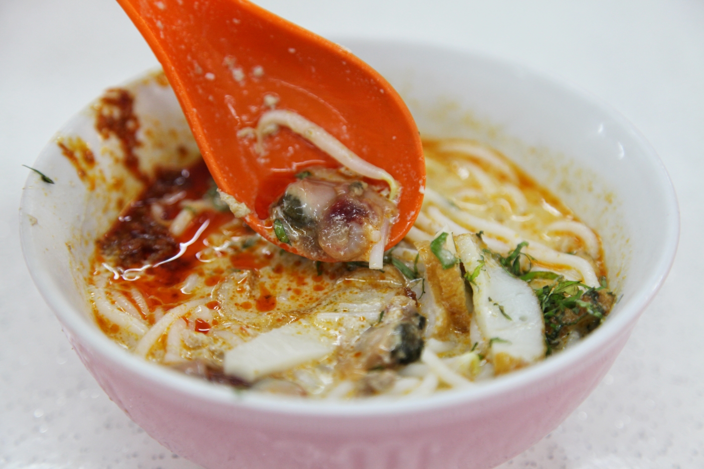 结霜桥叻沙汤底香浓,配上秘制的辣椒酱,超级好吃,但最点睛的精华是那个血蚬,很大的海水味,新鲜,口感水嫩有汁,正点。