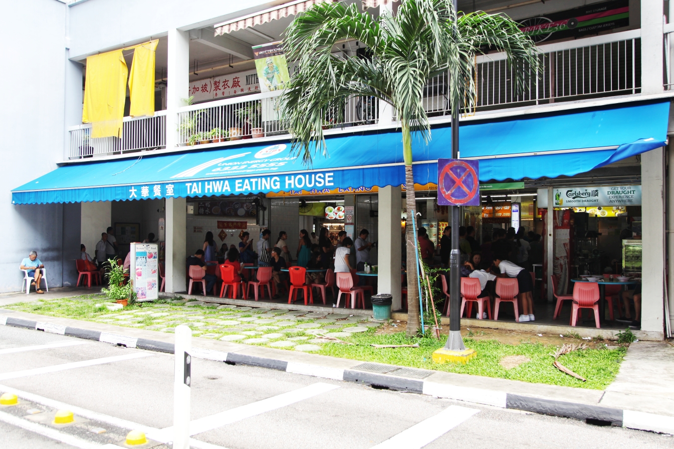 大华猪肉粿条面这里其实也是个熟食中心,除了大华,还有很多家小店子,看上面站着的人,都是在排队的。