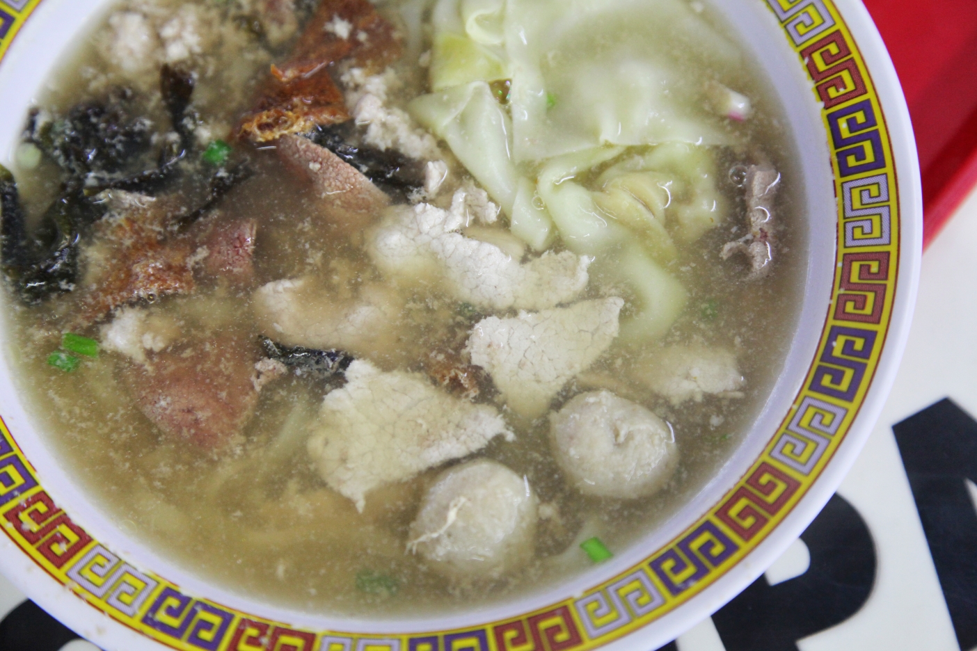 大华猪肉粿条面我们点了个中的粿条汤,一个中的肉脞面,一个小份的紫菜汤。