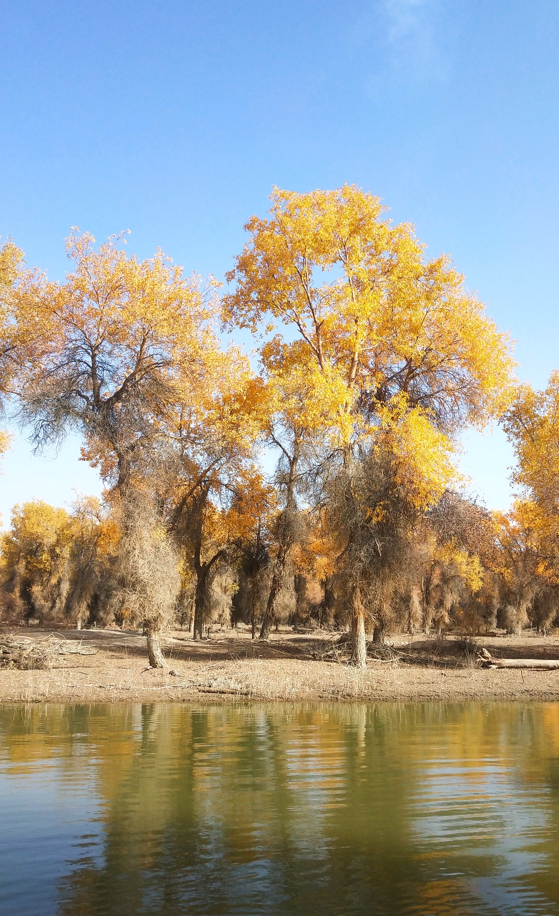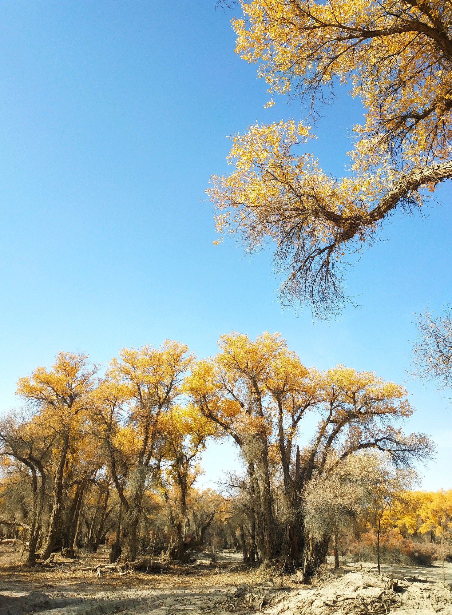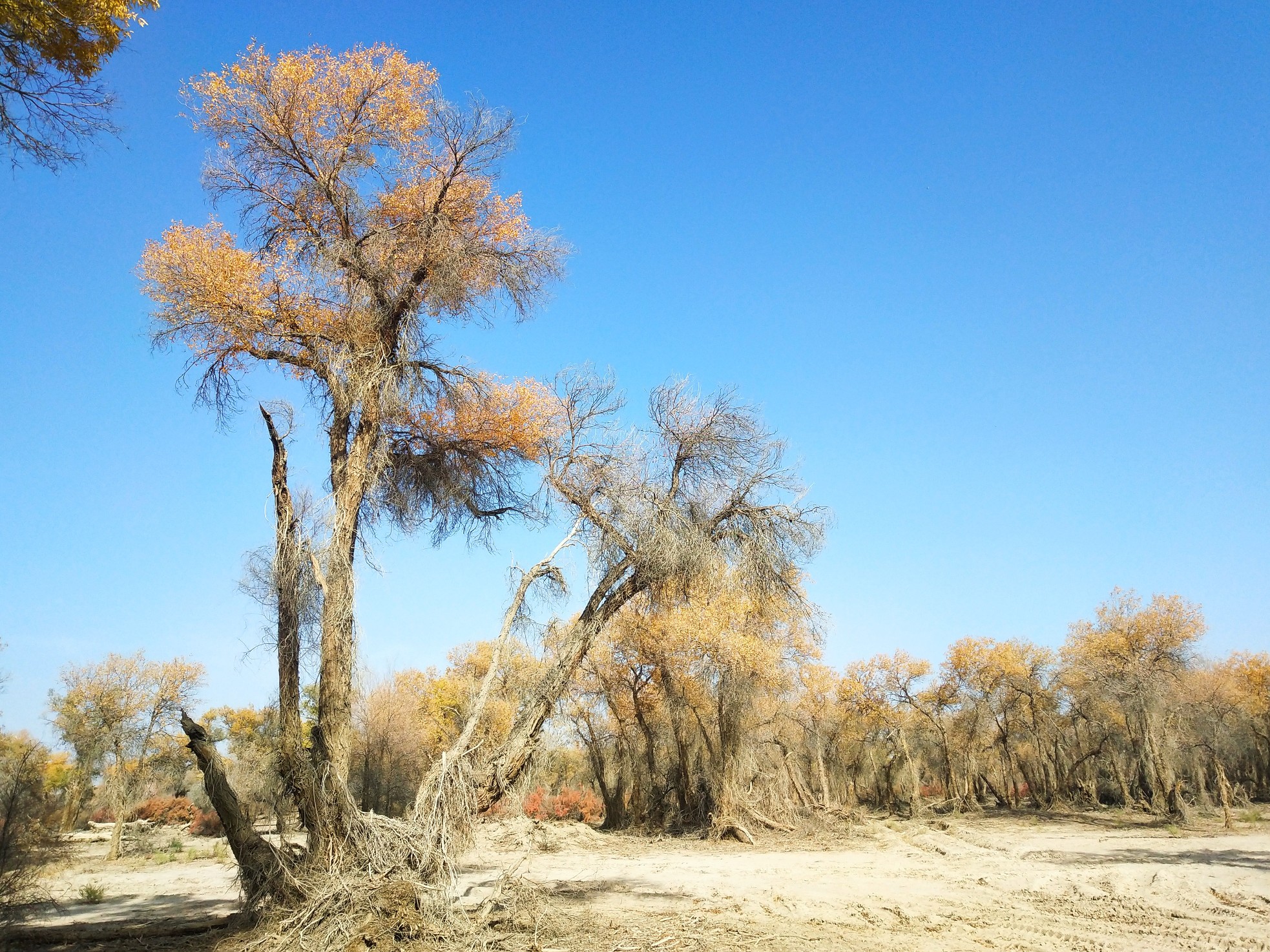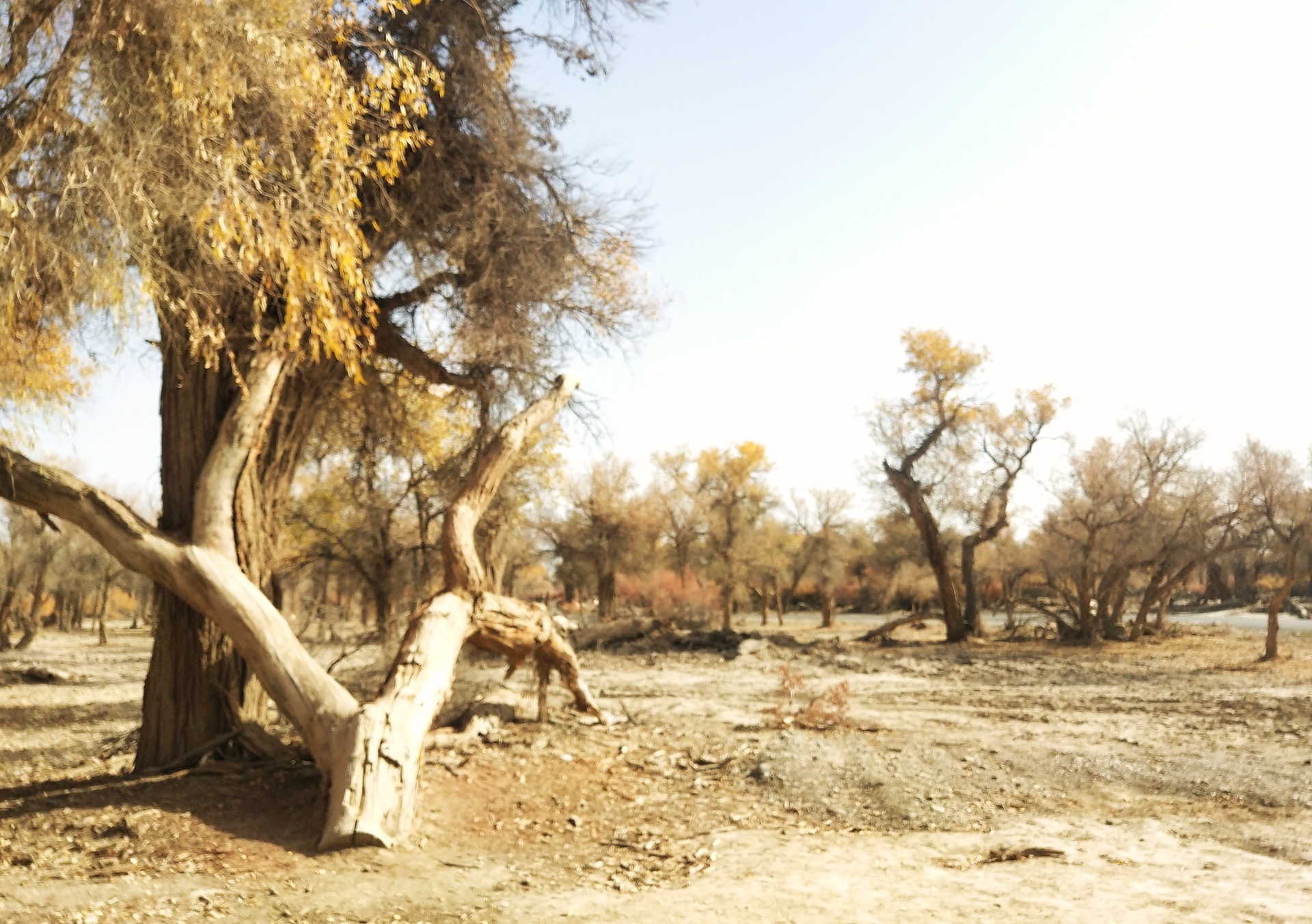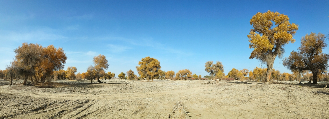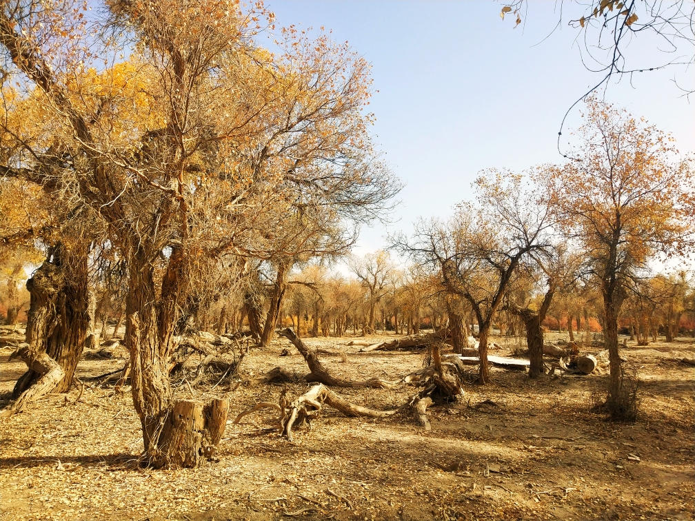 这是尉犁县罗布人家的胡杨林,更稀疏,也更有沙漠的感觉。