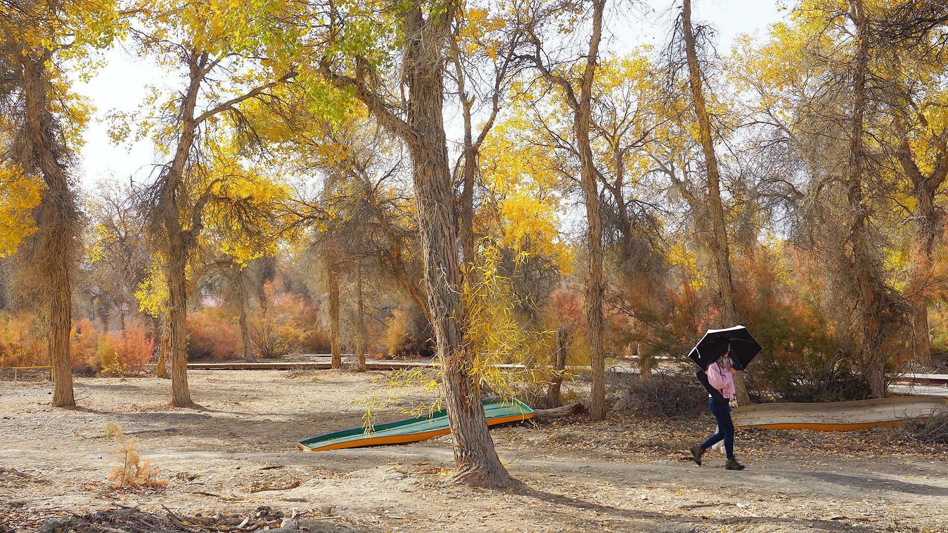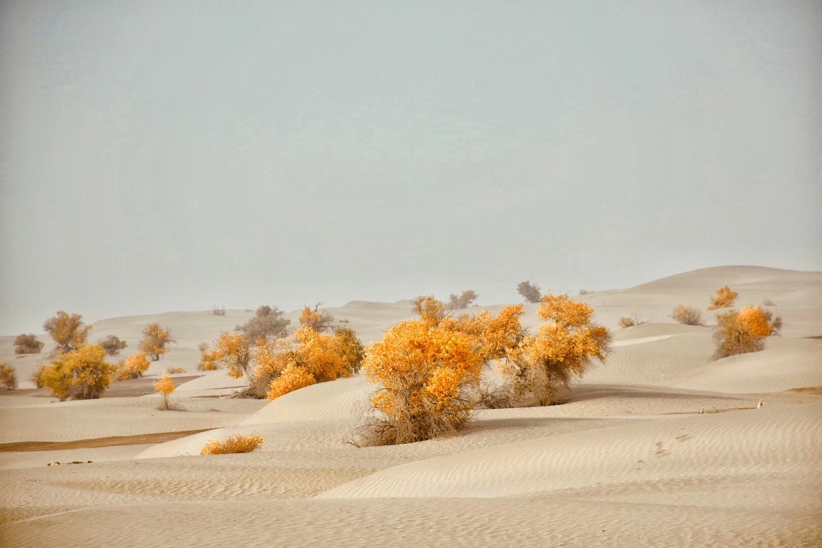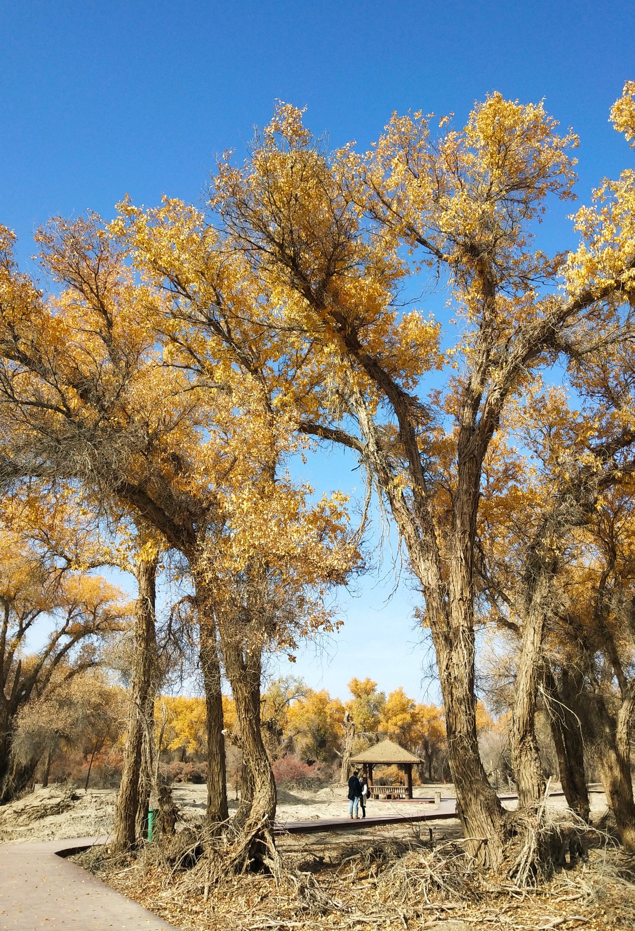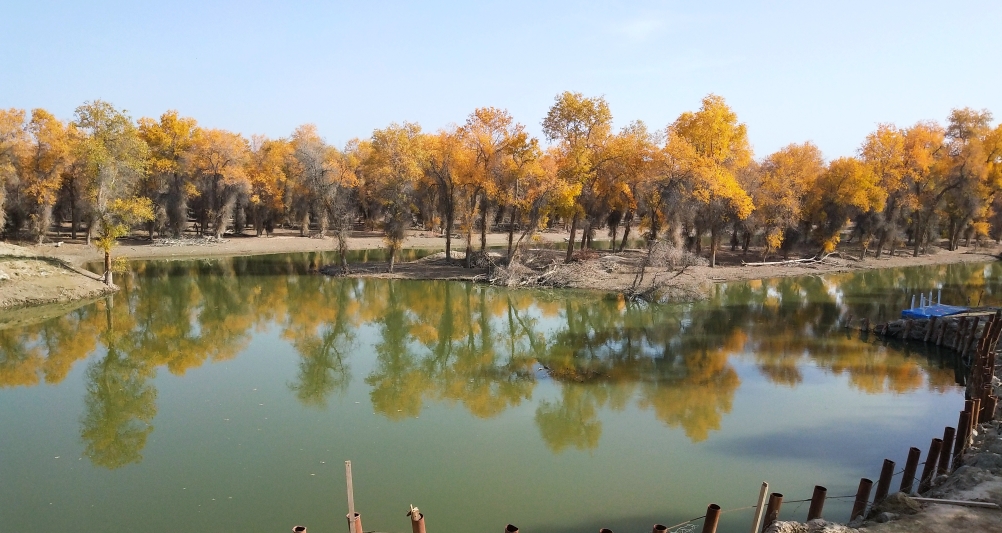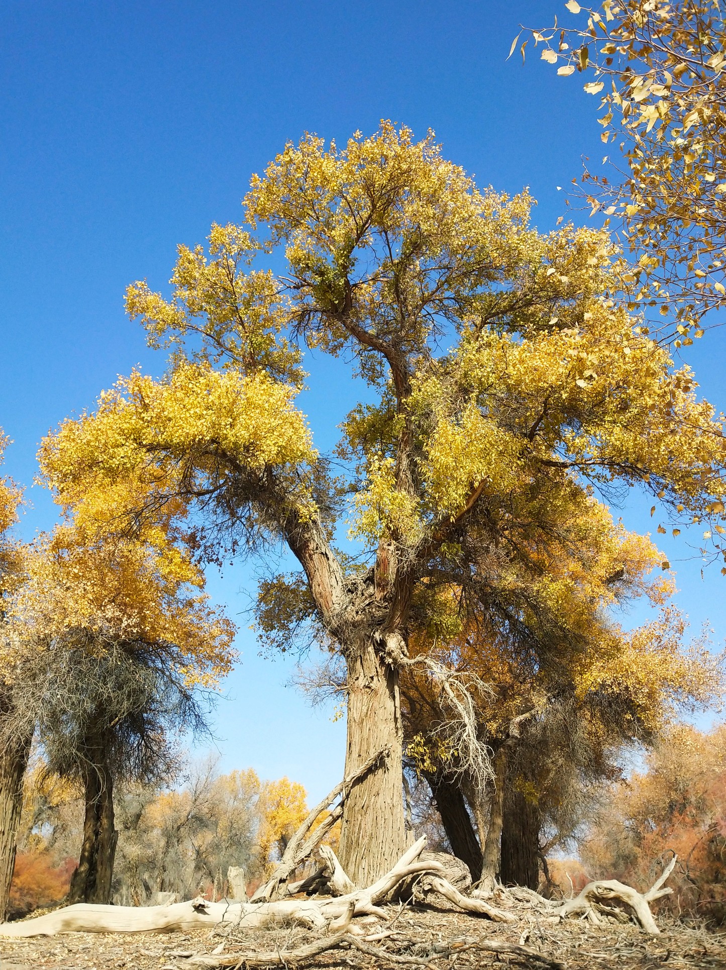 这是尉犁县罗布人家的胡杨林,更稀疏,也更有沙漠的感觉。