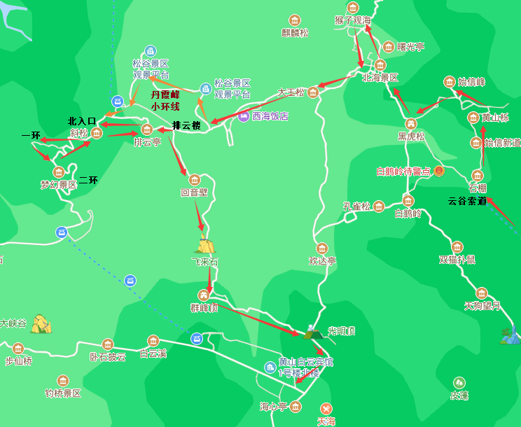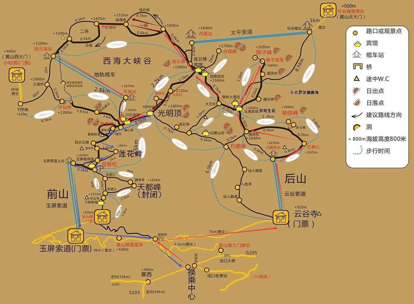 [题主采纳]题主朋友您好,根据您的要求,最适合的路线应该是这样的:【D1】南大门(黄山风景区换乘中心)→云谷寺→云谷索道→始信峰→北海宾馆→猴子观海往返→西海饭店→(丹霞峰)→排云楼→西海大峡谷一环返回→排云楼→飞来石→群峰顶→光明顶,看完日落(目前17:18)后入住白云宾馆。——以11点从换乘中心出发计...显示全部