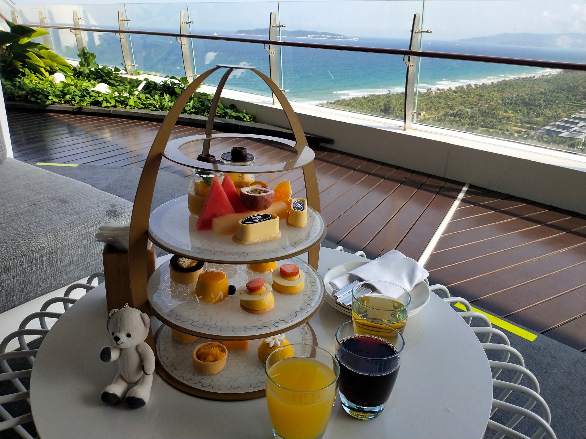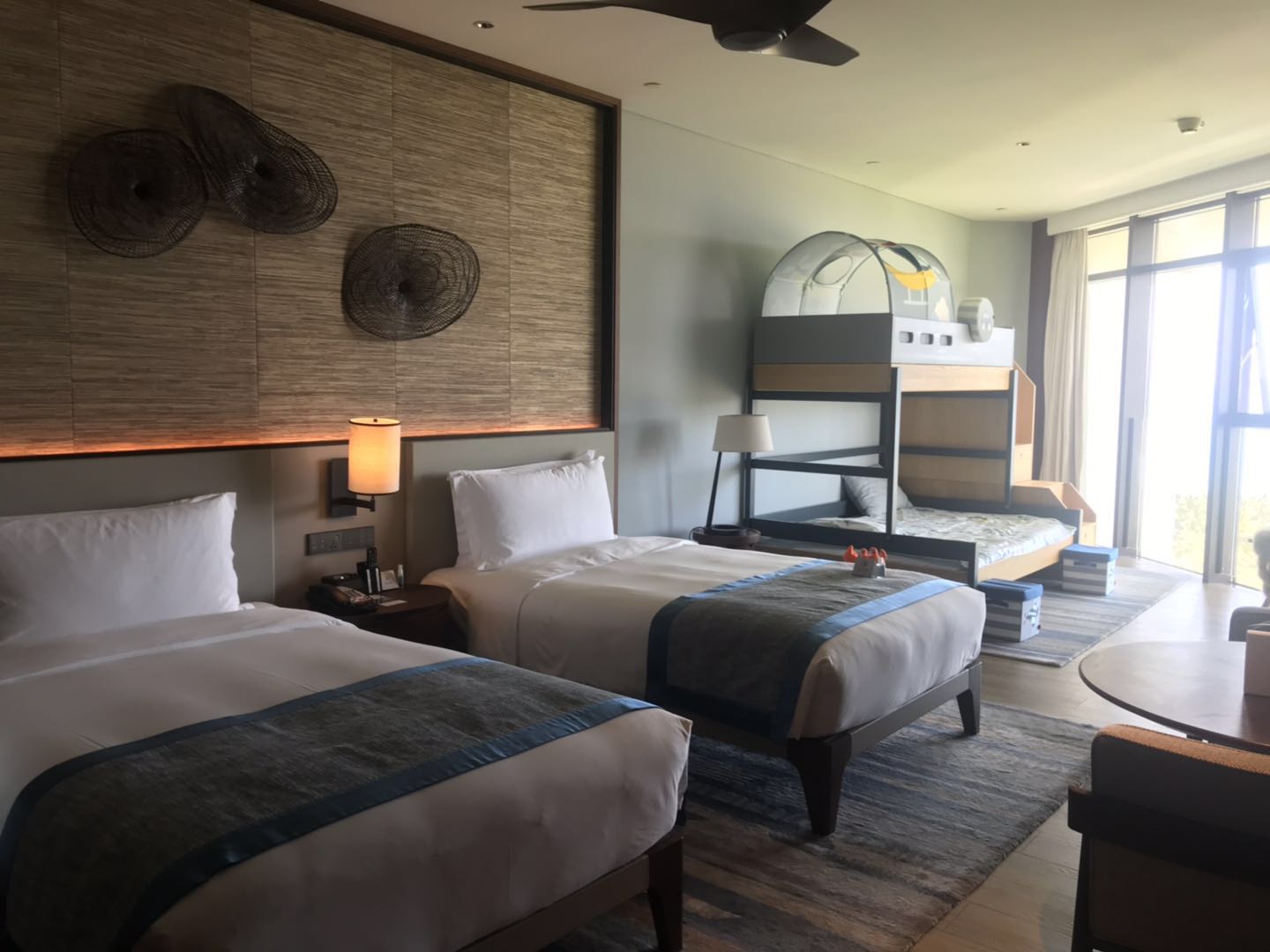 潜水的两个孩子传回来的照片,被勒令禁止发出去的照片哈哈,我像那么听话的孩子么?看到的时候真是笑出了猪叫的声音。哇卡卡卡卡卡----我觉得我这篇游记我娘应该看不到的。穿了潜水衣,真的不知道这人是哪位,我也只能凭指甲认出。我也很想拍玻璃船的照片咧 ·晚上等他们回来准备出去觅食啦,说实话我还是吃不惯 南 的本地口味,所以我选择了茶餐厅-翠华(在免税城二期),沿途遇到了太二酸菜鱼,不用排队的太二太福。 然后我又忍不住进来免税店看了一眼,嘻嘻敷面膜睡觉~~~~第二天结束 DAY 3 亚特兰蒂斯水世界早早起来上了酒店的顶层观赏了下无边泳池。奈何今天天没前两天那么蓝,拍照的效果都没那么好。木有身可露的照片,还是看看风景就好,反正我也不会下水游··觉得美图这个效果挺好玩的。··啊啊啊,我要说下仁恒酒店的自助早餐很合我胃口,品种算比起很多酒店的早餐算多的了,味道也还ok,可以吃到扶墙出,营业时间到11点,要是睡得晚可以早中餐一起解决了,省事省钱。想吃的还有很多的,奈何我的胃不配合我 吃饱回去折腾收拾去水世界啦,哎,其实我一点都不兴奋的,我对刺激的游戏真的一点兴趣都没有 而且那两个都是骗子,每个游戏下来都跟我说还可以,一点可信度都没有,就是想忽悠我上去除了大喇叭没开放,其他都玩了一个边(当然不是说我),水世界不大,人也不多,比起长隆最好的一点就是不用排队,前后三个小时搞定。长隆是有自己的拖鞋的,这里木有,所以还是需要穿一双能湿水的鞋子的,储物柜大的50.小的30.没在现场冲洗,反正酒店在隔壁,所以直接回去酒店方便点,玩水很累人,在酒店的270°餐厅定了一个芒果下午茶,海风吹的我昏昏欲睡 五点才吃的下午茶,估计晚餐又是可以省略的咯。发现一天都在睡睡睡~~~~休息了下小妞赖在床上死活拔不起来,我跟老妈子去海边踏踏浪去~DAY 4今天就要回去搬砖了,哎,时间咋那么快?又是没有安排行程的一天,十点睡到自然醒下去吃早餐,这个点早餐特多人还需要排队安排位置,妥妥的就是早餐跟午餐一起吃了。当再也撑不下去的时候上去化妆去,今天还是约了前天的小哥哥过来拍照,主要还是拍其他俩个啦,我就是个陪衬的,反正化妆都不会,一年出去时候才会动用到化妆品,脸涂白了,口红涂红了,就是化了,效果一点都不重要,现在有伟大的Photoshop·····2点退房后下去游戏机室等下小哥哥,约的一点还有很多时间只能瞎逛,两个大小孩···刷图又来啦····首先放个小视频晒的脸红红的,希望回去不要让本身就不白的肤色又深了一个色号,照片太多,不增加阅读的疲劳感了。5点半的灰机,拍完才3点决定去隔壁的艾迪逊酒店喝个网红下午茶,拍照很美,艾迪逊更多年轻人住,仁恒还是适合亲子的。但是要我吐槽的就是酒店风景美倒是美,但是服务态度上真的完全比不上仁恒皇冠,让我没有回头的欲望。要在这里吐槽一个点,话说同行的妹纸看上人家拍照的小哥哥了,听到阿娘说小哥哥在 大连 买了房子,特别想把小哥哥介绍给他 大连 的一个姐妹儿,让我去问对方有没女朋友,阿勒,这么尬聊的事儿我才不去干,你真有心我顶多把微信或者电话号码给你,你自己看(因为他们两个一路在讨论,感觉大脑皮层都接受了好多这信息,让我当晚竟然梦到摄影师来我们公司面试,填了一份应聘的简历表,然后写了有对象哈哈,我真是多敬业爱岗啊,做梦都不忘招聘,当然我实际上的面试登记表是没有这个信息可以填写的,梦境自己加上的哈哈········当然这都是行程结束后发生的事儿) 我这睡得多累,起来跟游魂一样的去上班。喝完回来休息一会儿整个行程就算结束了,出发去酒店咯。