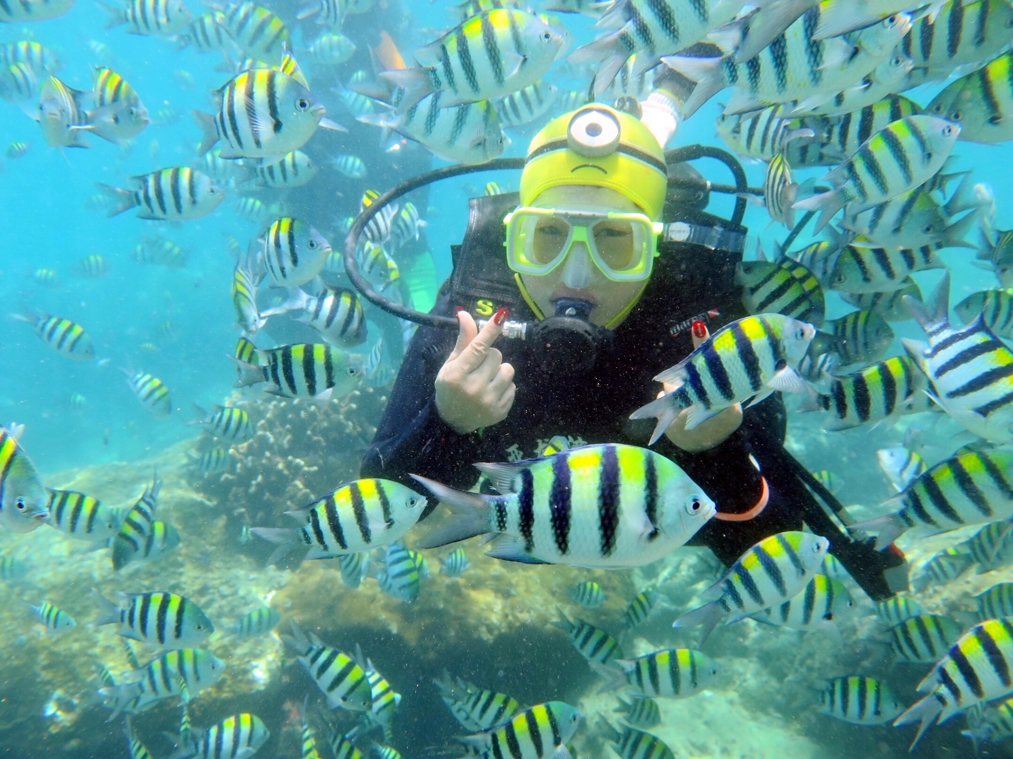 穿了潜水衣,真的不知道这人是哪位,我也只能凭指甲认出。