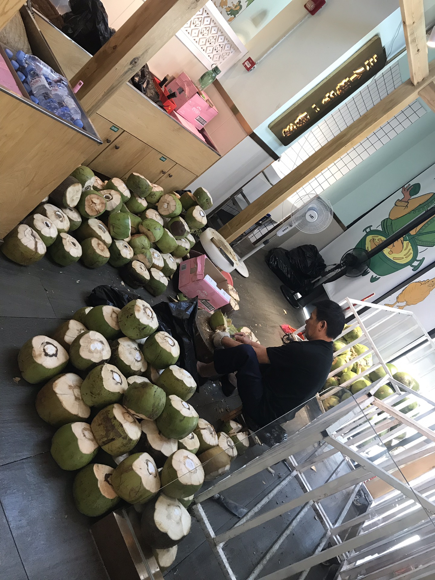 一进门门口大叔在开椰子,一天得开几个?