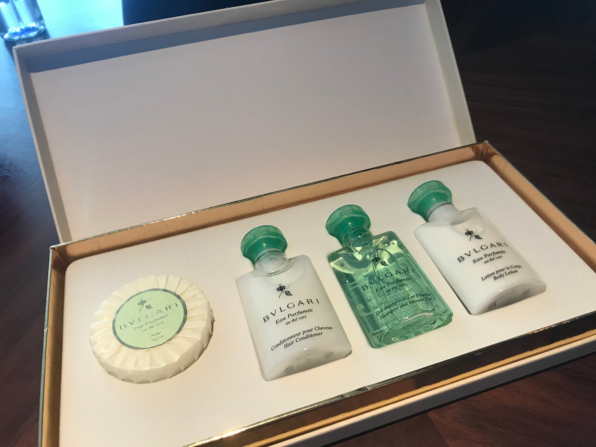 每个房间赠送一套宝格丽的洗护用品,绿茶味儿的。