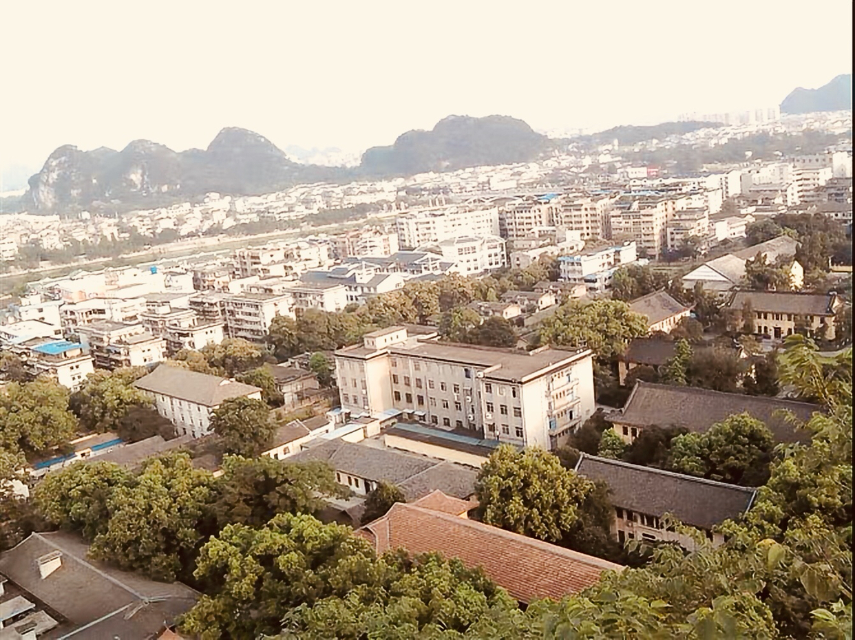 正如其名,独立成峰,秀气逼人,因为是旅游城市,桂林市区里的房子都不高,站在独秀峰上,就能俯视大半个桂林