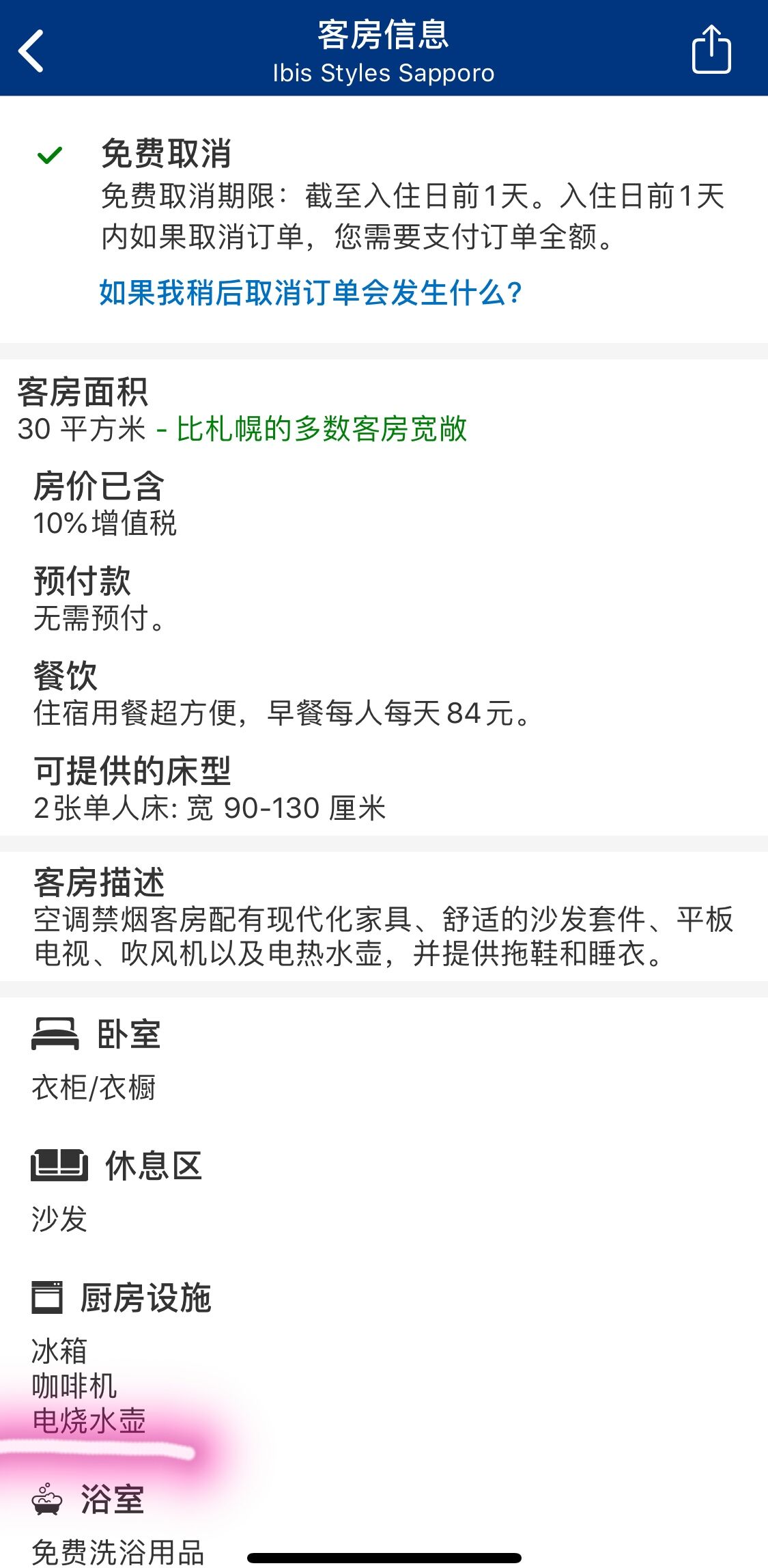 日本也是一个讲究茶文化的国家。不论是五星级或三星级的酒店,都有配备茶包和电热水壶。一般民宿也都会有电热水壶。除非胶囊旅馆或者青旅,房间里没有。网上订住宿时,住宿设施都会有清晰的标明,选择有的即可。北海道是日本除了关东关西之外,最热门的旅游地。各方面的配套,设施和服务都很不错的。