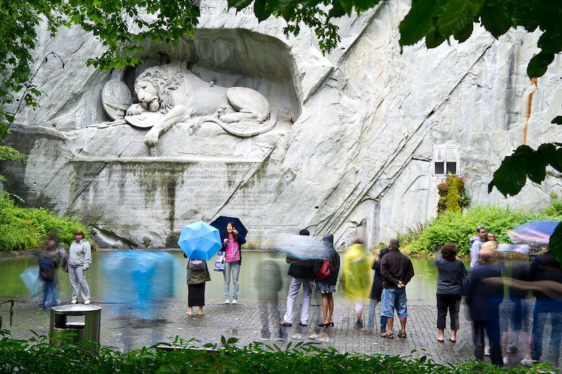寻找罗伊斯河北侧的标志性狮子纪念碑。它纪念在法国大革命中丧生的瑞士士兵。马克·吐温(Mark Twain)称这具致命伤的野兽为“世界上最悲惨,最动人的石头”。
