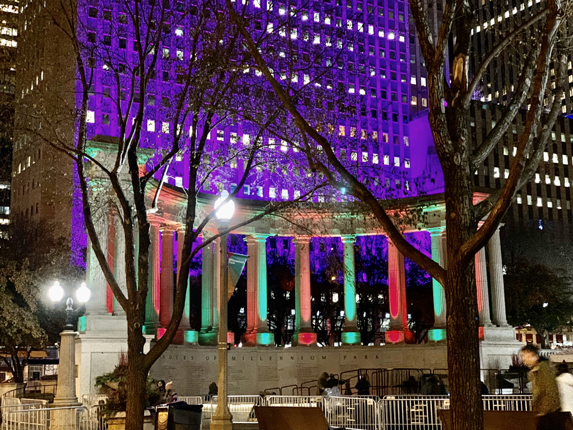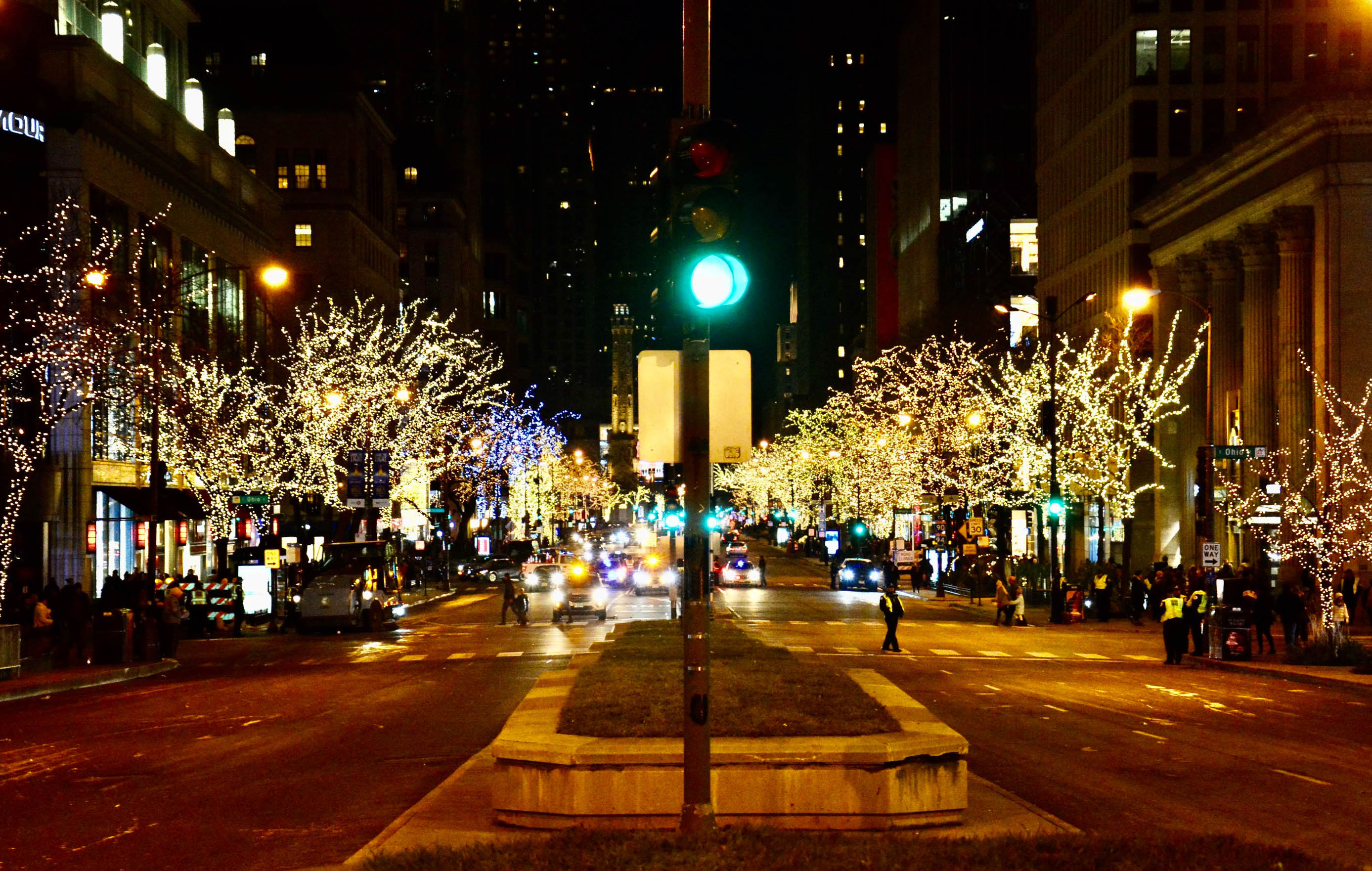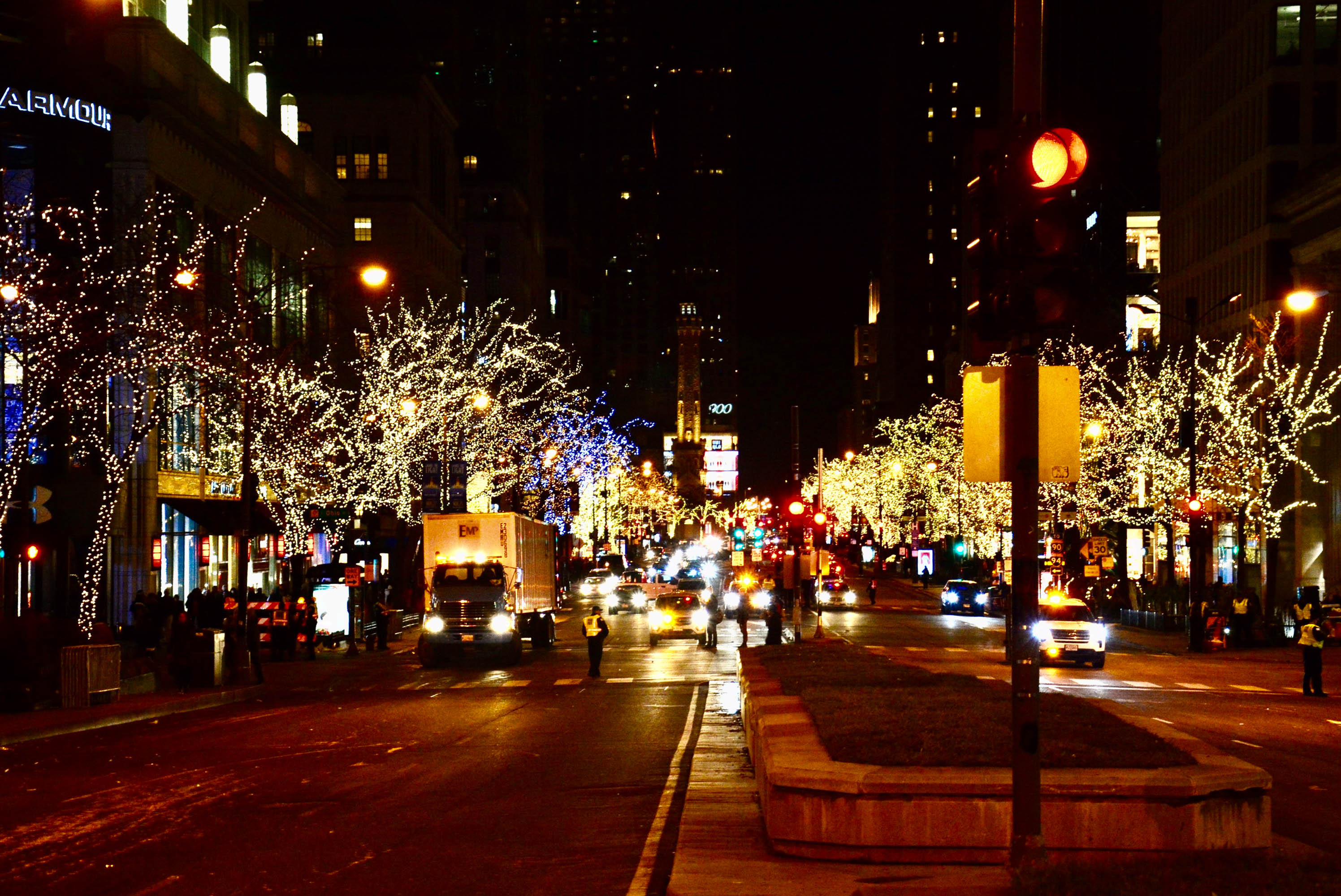 著名的华丽一英里(Magnificent Mile) 上面会有亮灯节,整个一条街,主干道上,被星星灯点亮,远看有夜樱的feel。