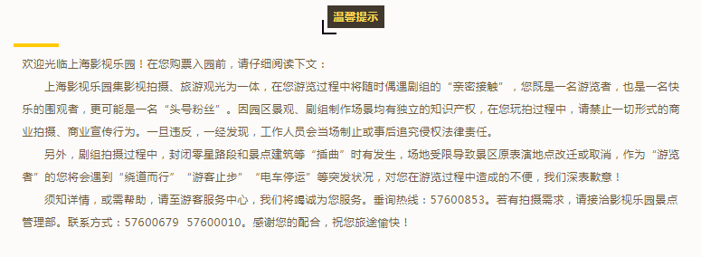 几点提示:1.这个景点离市区挺远的。我上次坐车就将近坐了一个上午。2. 如果幸运的话可以碰到明星,但是想要合照签名还是很难的,有的拍摄现场会用白布遮起来,周围都配有保安,明星不在拍摄现场就在房车里 。几乎没有可能近距离接触。3.景区里的叮叮车的最后一班是3.30。