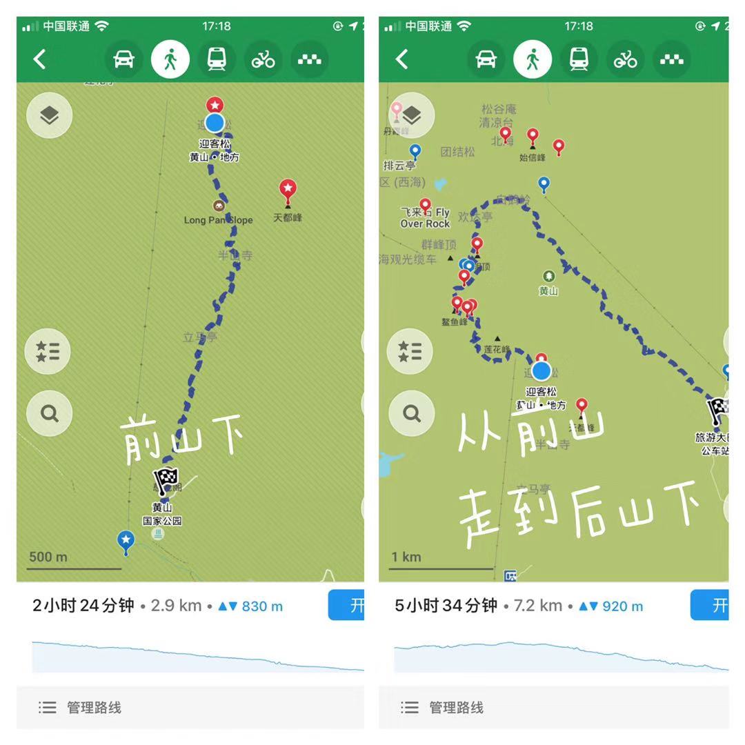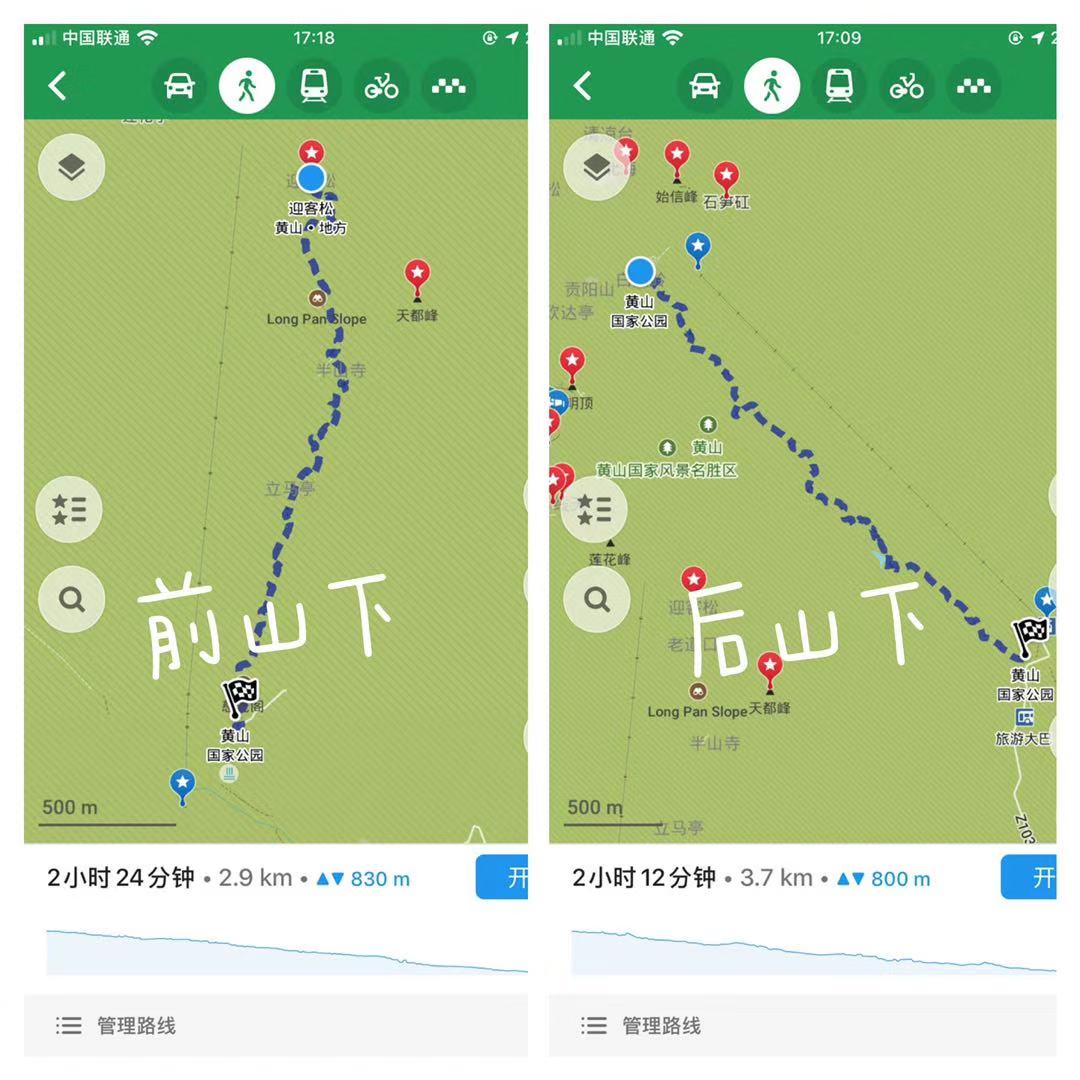 此楼各位大佬说得都没什么问题,针对楼主的情况“慈光阁索道上,就看看迎客松”而言,追求速度的话,必然是慈光阁下山最佳。来看一下具体数据:嗯纯看两段下山路数据(请一定忽视Maps.me的路程估时),确实如大家所说,“区别不大”,“前山略陡一些”。但追求下山速度的话肯定还是前山比较快,少将近1公里呢...显示全部