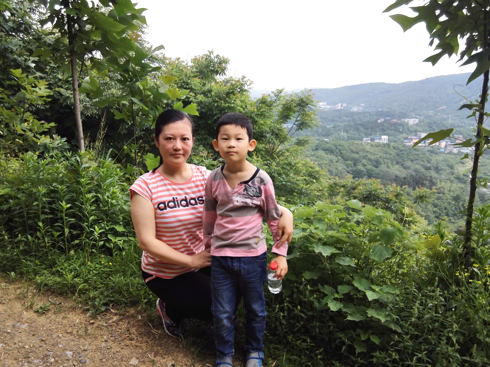老婆带小侄子爬山