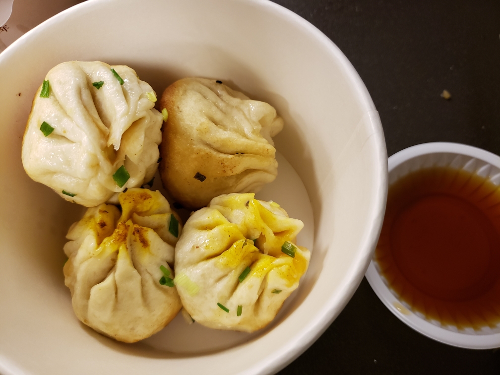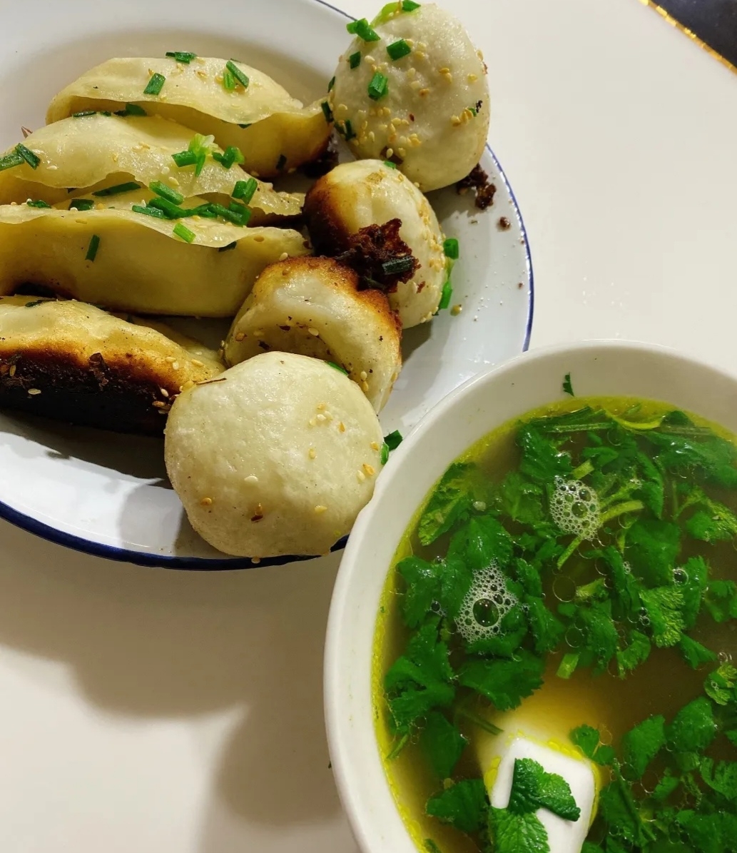 人的标配是一两生煎,一两锅贴,再配碗咖喱牛肉汤,舒舒服服有汤有水。