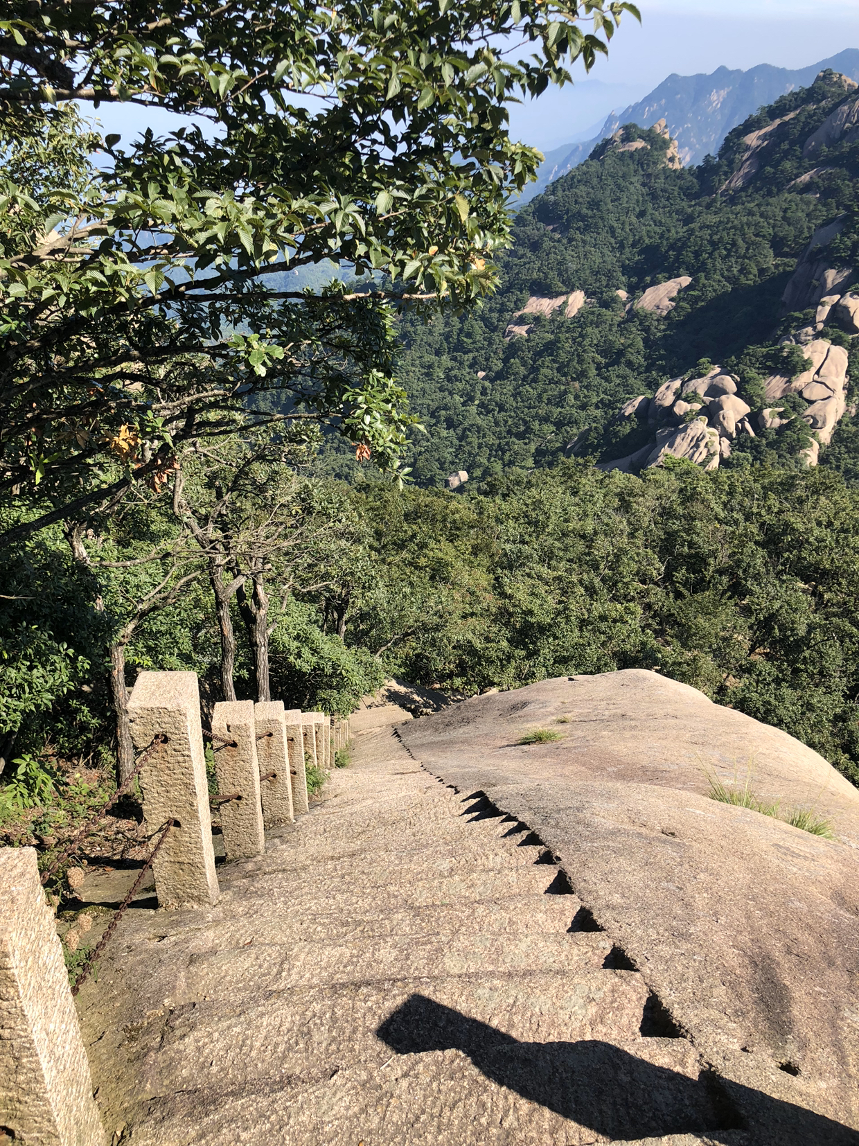 天台索道在景区内,通往天台寺,单程10分钟吧,旺季往返160,索道下站在古拜经台,也是一个寺,再往上登800多个台阶留到天台寺了。如不坐索道,也有石板路可徒步登山,单程约2小时,沿途寺庙挺多,景色很美。