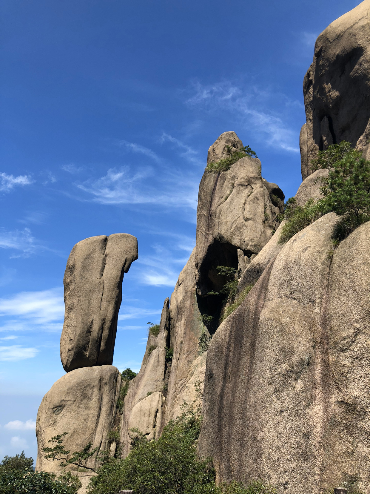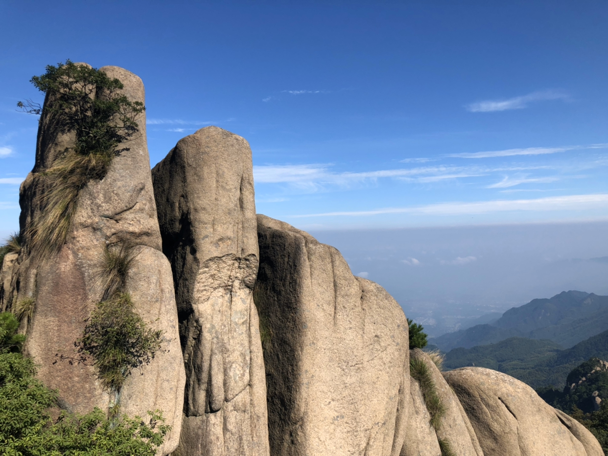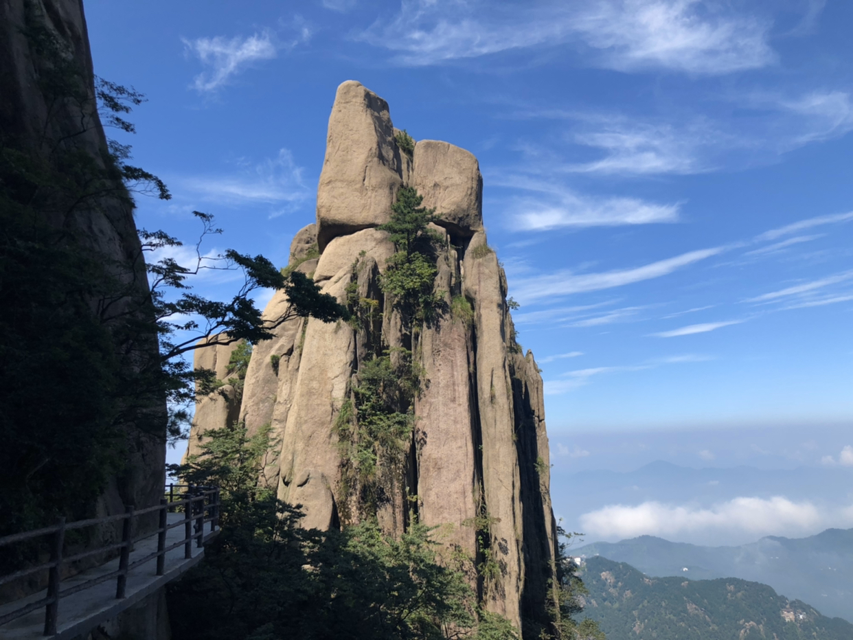 花台索道在景区外,单程20分钟,旺季往返160,花台景区以奇峰怪石取胜,季节性云海,四五月份有映山红。另外从景区内天台景区也可以步行前往花台,单程2小时。