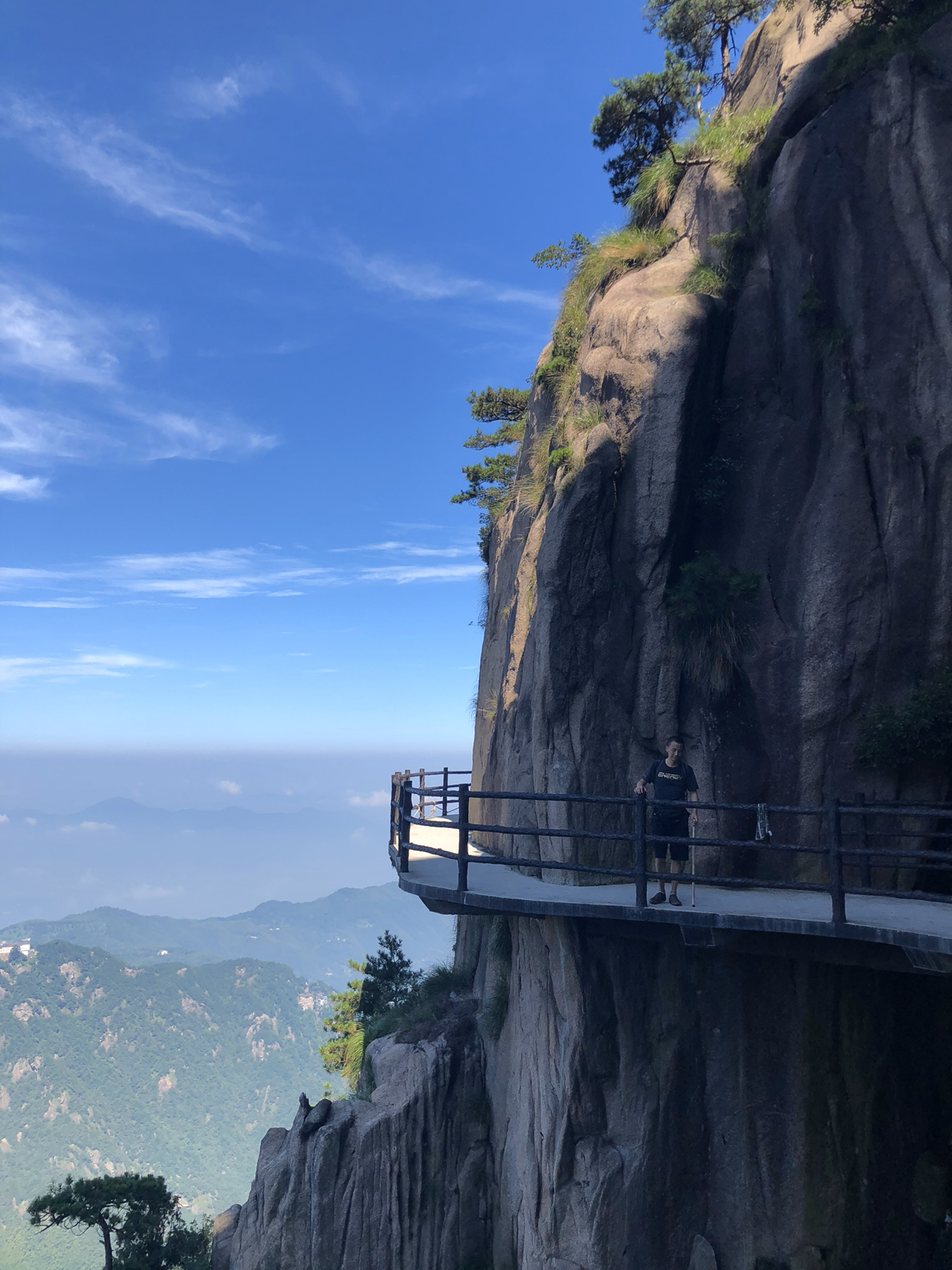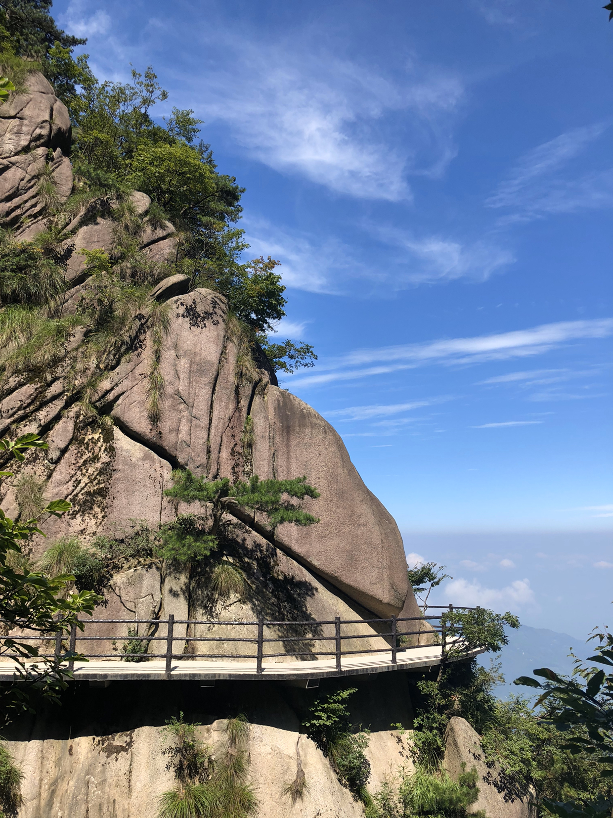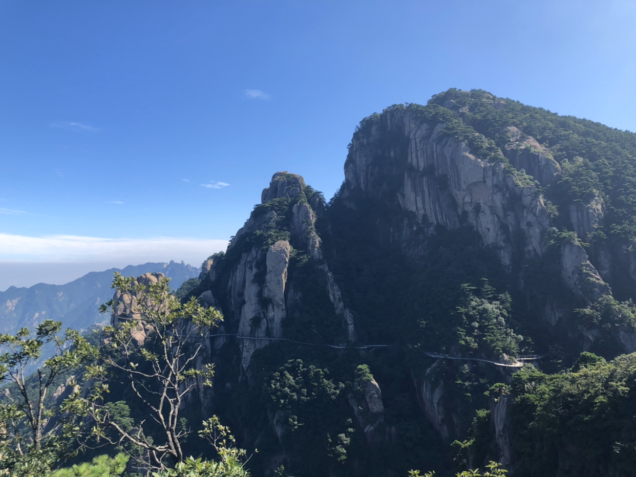 花台索道在景区外,单程20分钟,旺季往返160,花台景区以奇峰怪石取胜,季节性云海,四五月份有映山红。另外从景区内天台景区也可以步行前往花台,单程2小时。