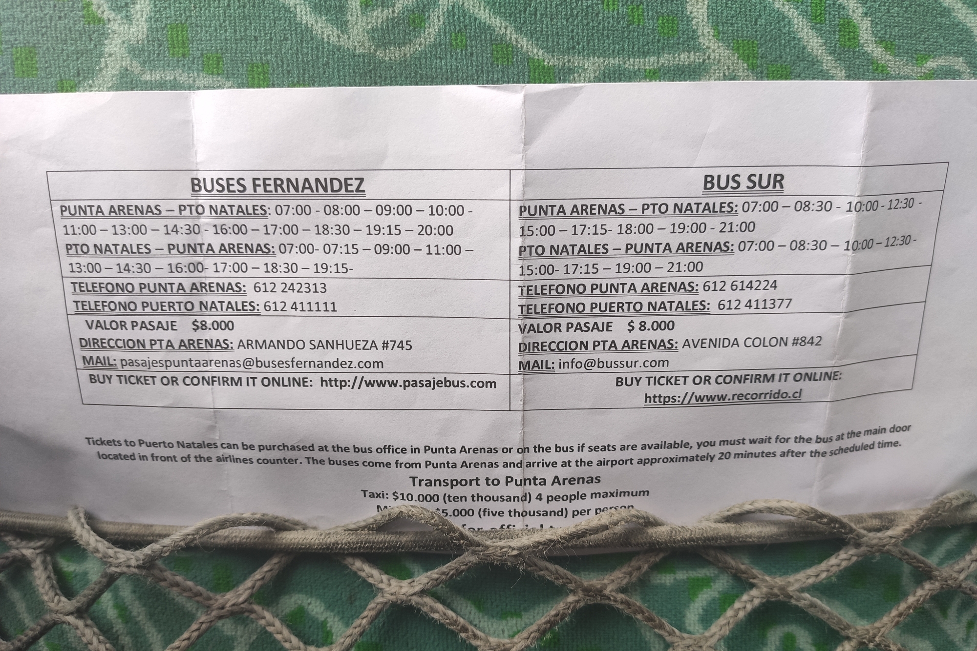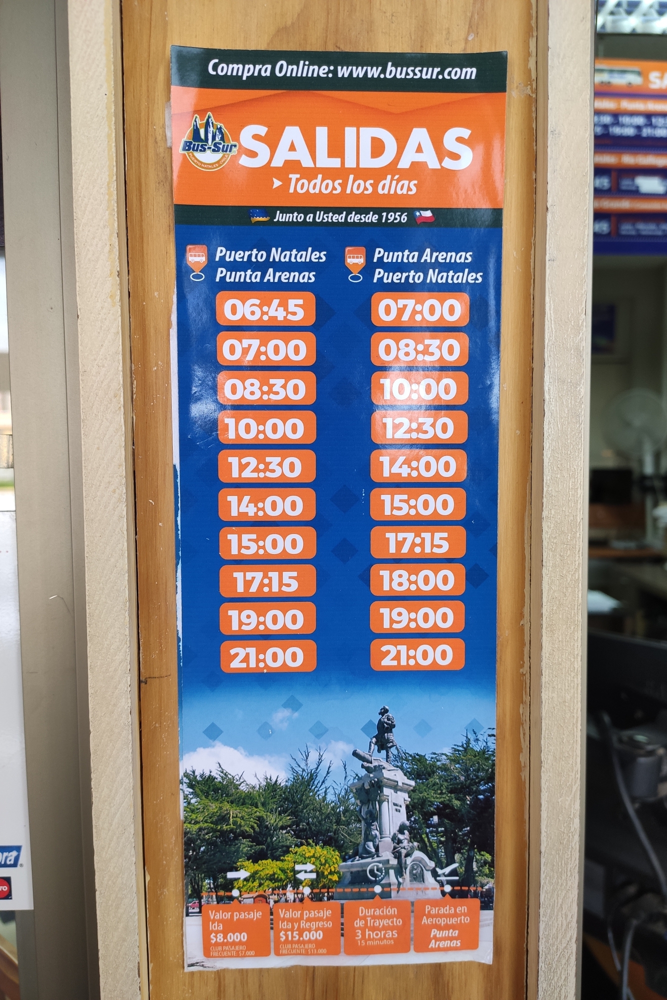 从纳塔莱斯到蓬塔阿雷纳斯有好几家巴士公司,几乎任何时间段哪怕晚上都有车,为什么会没有跟你合适的时间?你是要什么时候坐车?以下两家公司的发车时间跟你都不合适吗?如果没有的话,我没看到有包车的。========== 如果你觉得TA的回答不错,快来给TA点个赞吧! 你的支持是对作者莫大的鼓励~显示全部